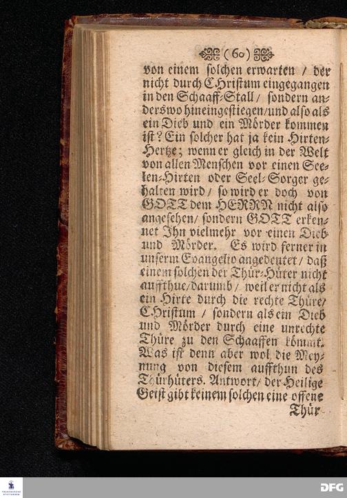 Predigt Von dem Dienst Untreuer Lehrer / Uber das Evangelium Joh.X, 1--11. Am Pfingst=Dienstage ANNO 1698. In der St.Georgen=Kirche zu Glaucha an Halle gehalten / Und nun zum andernmal herausgegeben von M.August Hermann Francken / SS.Theol.Gr.& OO.LL.P.P.Ord.& P.Glauch. HALLE / Druckts Christian Henckel / 1699.