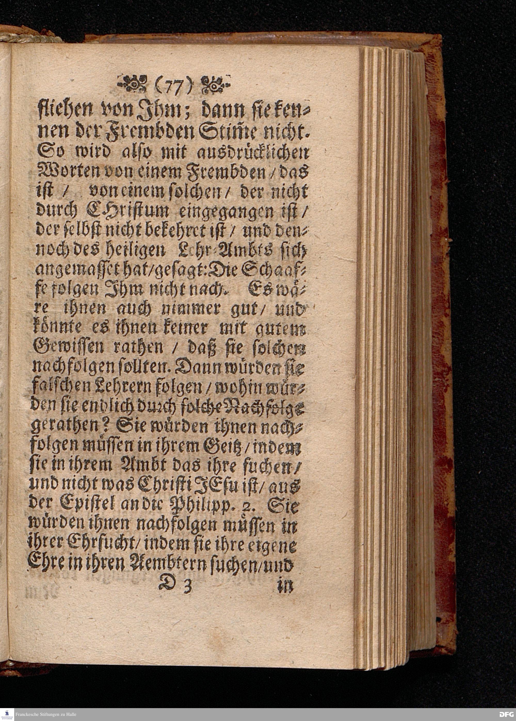 Predigt Von dem Dienst Untreuer Lehrer / Uber das Evangelium Joh.X, 1--11. Am Pfingst=Dienstage ANNO 1698. In der St.Georgen=Kirche zu Glaucha an Halle gehalten / Und nun zum andernmal herausgegeben von M.August Hermann Francken / SS.Theol.Gr.& OO.LL.P.P.Ord.& P.Glauch. HALLE / Druckts Christian Henckel / 1699.