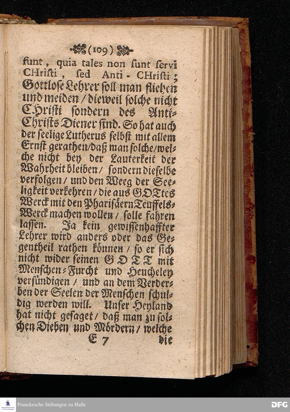 Predigt Von dem Dienst Untreuer Lehrer / Uber das Evangelium Joh.X, 1--11. Am Pfingst=Dienstage ANNO 1698. In der St.Georgen=Kirche zu Glaucha an Halle gehalten / Und nun zum andernmal herausgegeben von M.August Hermann Francken / SS.Theol.Gr.& OO.LL.P.P.Ord.& P.Glauch. HALLE / Druckts Christian Henckel / 1699.