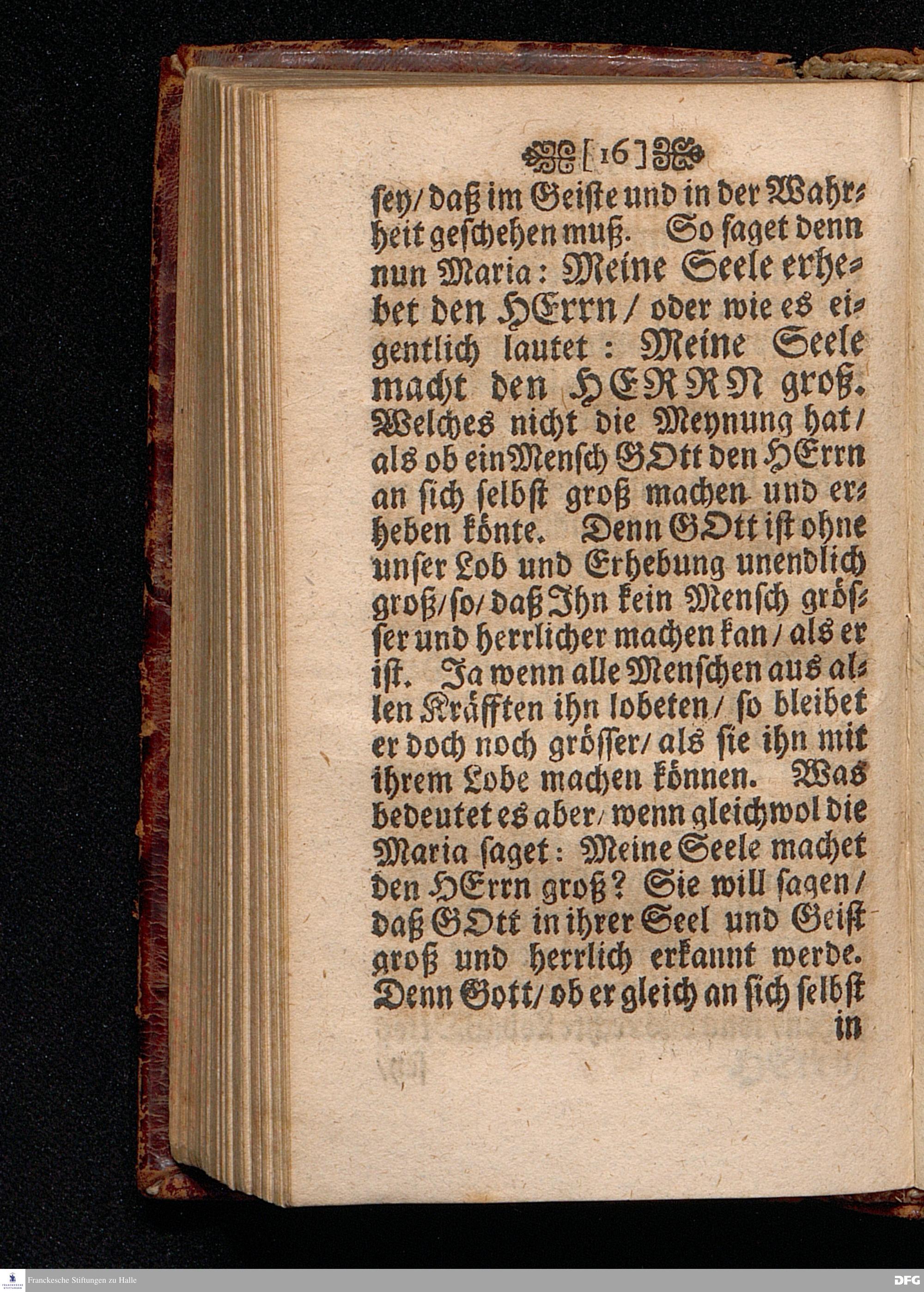 Das rechte Lob Gottes / Auff das Fest Mariä Heimsuchung / ANNO 1700. In einer Predigt Uber das Evangelium Luc.I.V.39 biß 56. In der St.Georgen Kirche zu Glaucha an Halle vorgestellet von M.August Hermann Francken / S.S.Theol.Profess.P.Ordin.& Past Glauch. HALLE / Druckts Christian Henckel.