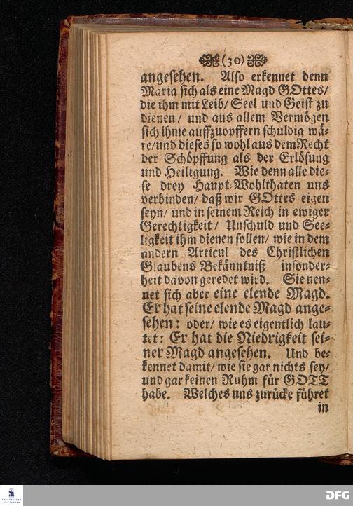 Das rechte Lob Gottes / Auff das Fest Mariä Heimsuchung / ANNO 1700. In einer Predigt Uber das Evangelium Luc.I.V.39 biß 56. In der St.Georgen Kirche zu Glaucha an Halle vorgestellet von M.August Hermann Francken / S.S.Theol.Profess.P.Ordin.& Past Glauch. HALLE / Druckts Christian Henckel.