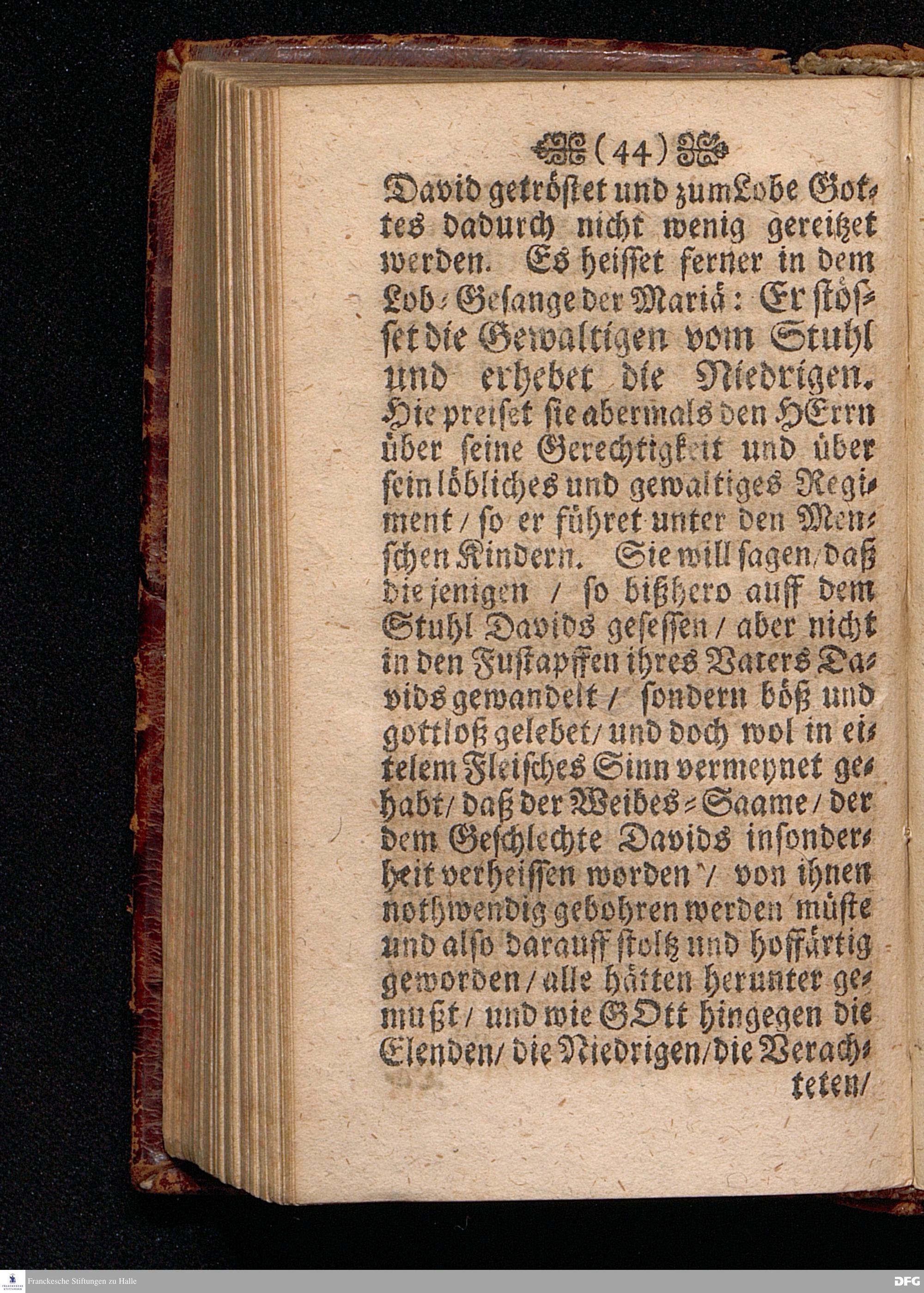 Das rechte Lob Gottes / Auff das Fest Mariä Heimsuchung / ANNO 1700. In einer Predigt Uber das Evangelium Luc.I.V.39 biß 56. In der St.Georgen Kirche zu Glaucha an Halle vorgestellet von M.August Hermann Francken / S.S.Theol.Profess.P.Ordin.& Past Glauch. HALLE / Druckts Christian Henckel.