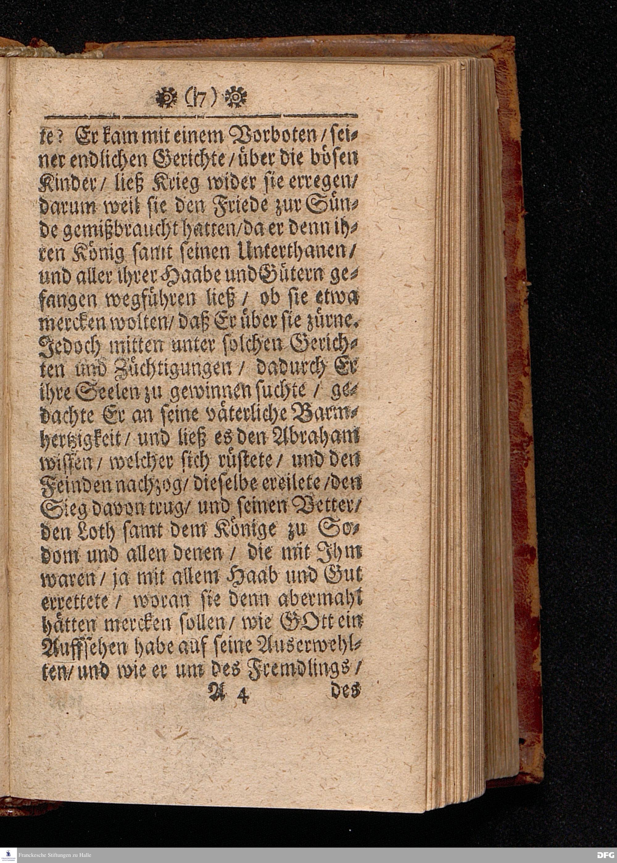 Die Göttliche VISITATION oder Heimsuchung Der erbarmenden Liebe GOttes. Am Fest Johannis des Täuffers / Anno 1700. In einer Predigt Uber das Evangelium Luc.I, v.57--80. In der St.Georgen=Kirche zu Glaucha an Halle vorgestellet von M.August Hermann Francken / S.S.Theol.P.P.Ord.& Past.Glauch. HALLE / Gedruckt bey Johann Grunern / 1702.