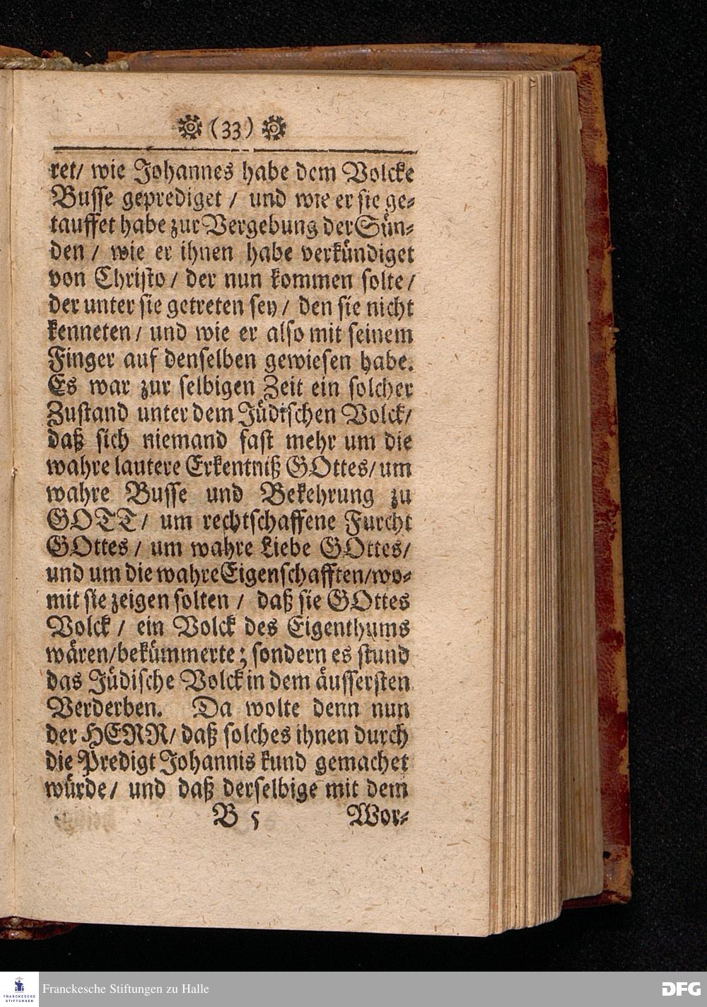 Die Göttliche VISITATION oder Heimsuchung Der erbarmenden Liebe GOttes. Am Fest Johannis des Täuffers / Anno 1700. In einer Predigt Uber das Evangelium Luc.I, v.57--80. In der St.Georgen=Kirche zu Glaucha an Halle vorgestellet von M.August Hermann Francken / S.S.Theol.P.P.Ord.& Past.Glauch. HALLE / Gedruckt bey Johann Grunern / 1702.