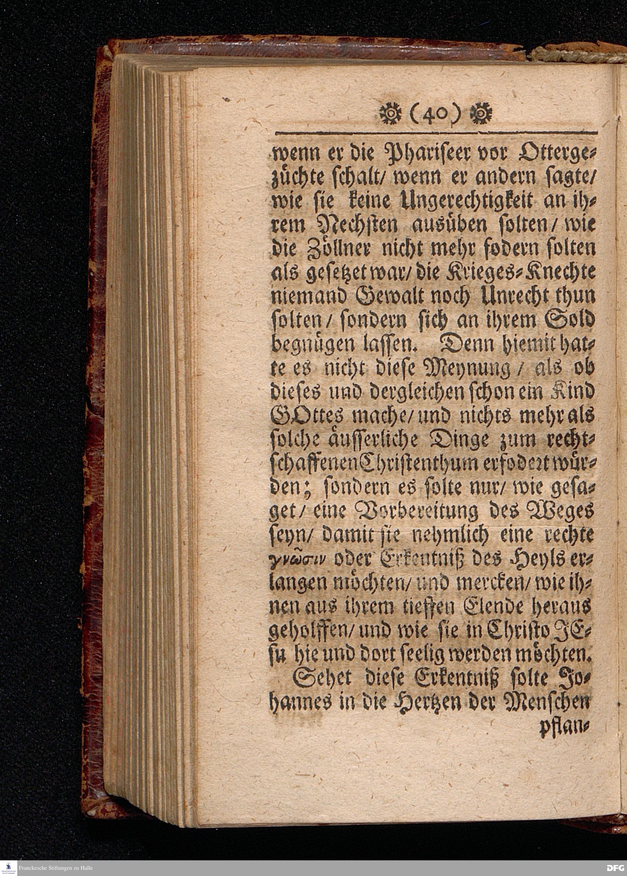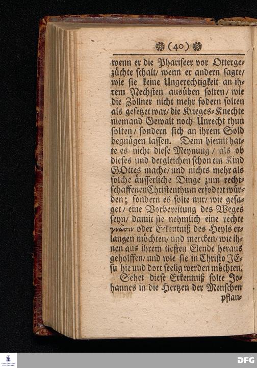 Die Göttliche VISITATION oder Heimsuchung Der erbarmenden Liebe GOttes. Am Fest Johannis des Täuffers / Anno 1700. In einer Predigt Uber das Evangelium Luc.I, v.57--80. In der St.Georgen=Kirche zu Glaucha an Halle vorgestellet von M.August Hermann Francken / S.S.Theol.P.P.Ord.& Past.Glauch. HALLE / Gedruckt bey Johann Grunern / 1702.