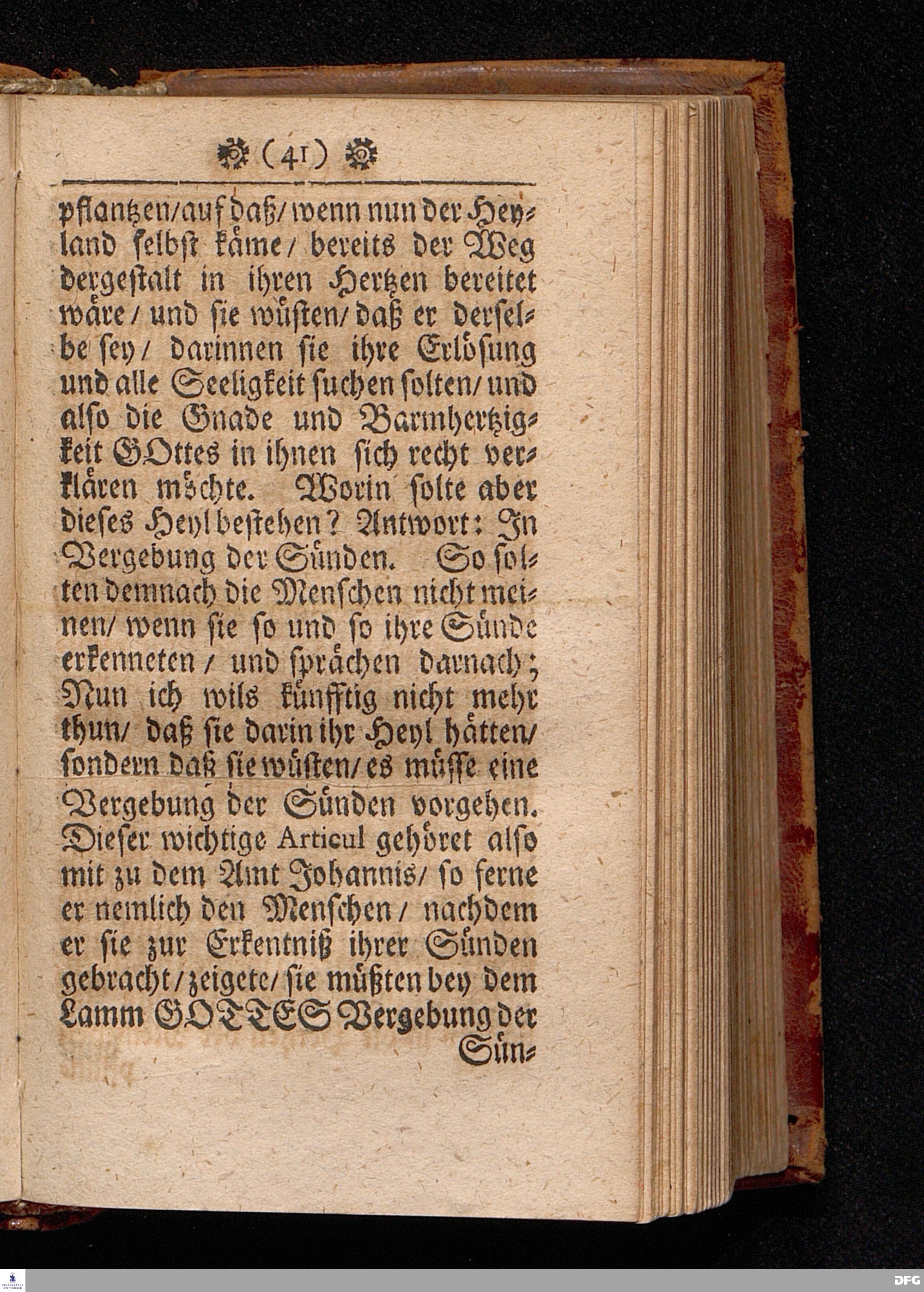 Die Göttliche VISITATION oder Heimsuchung Der erbarmenden Liebe GOttes. Am Fest Johannis des Täuffers / Anno 1700. In einer Predigt Uber das Evangelium Luc.I, v.57--80. In der St.Georgen=Kirche zu Glaucha an Halle vorgestellet von M.August Hermann Francken / S.S.Theol.P.P.Ord.& Past.Glauch. HALLE / Gedruckt bey Johann Grunern / 1702.