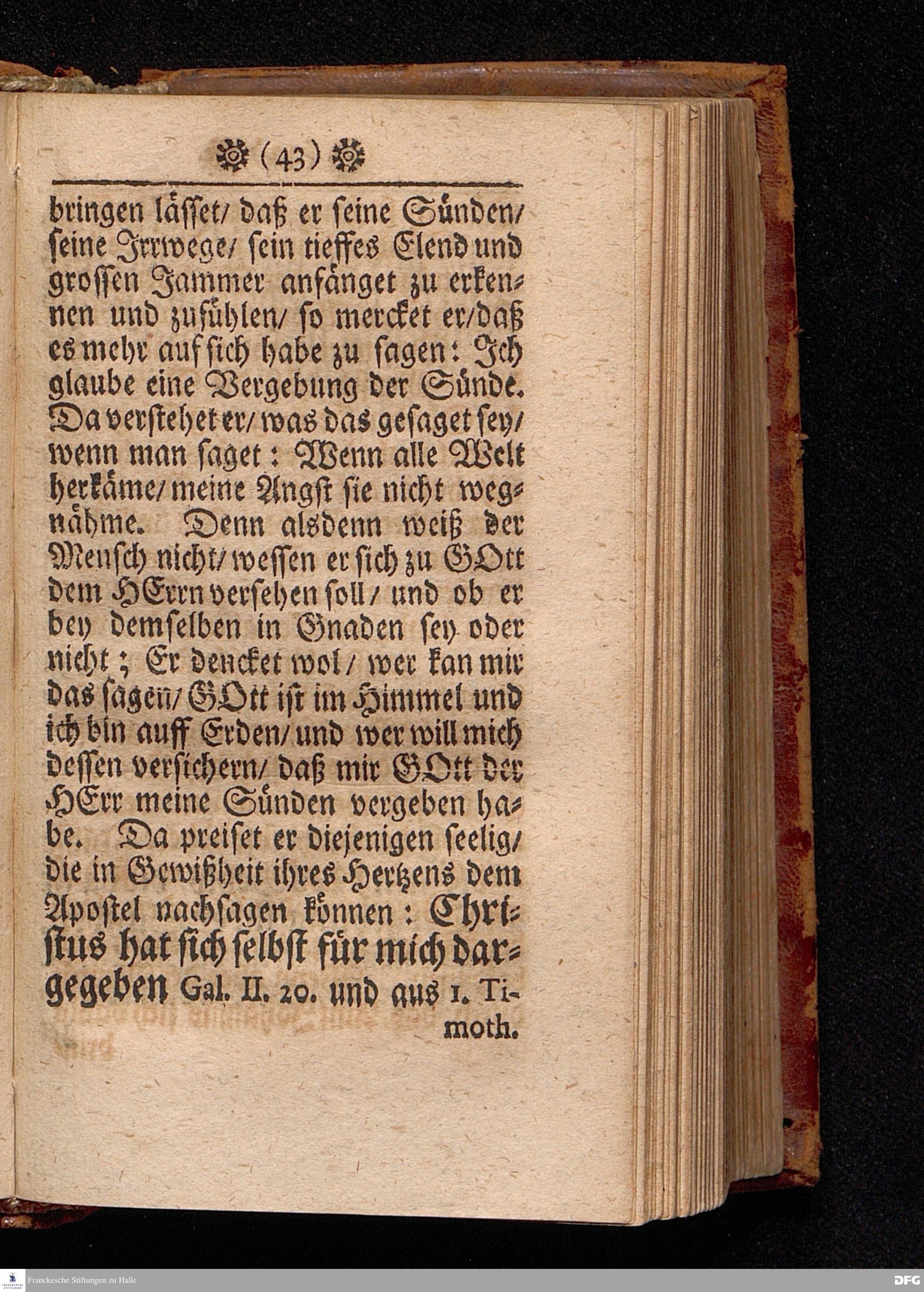 Die Göttliche VISITATION oder Heimsuchung Der erbarmenden Liebe GOttes. Am Fest Johannis des Täuffers / Anno 1700. In einer Predigt Uber das Evangelium Luc.I, v.57--80. In der St.Georgen=Kirche zu Glaucha an Halle vorgestellet von M.August Hermann Francken / S.S.Theol.P.P.Ord.& Past.Glauch. HALLE / Gedruckt bey Johann Grunern / 1702.