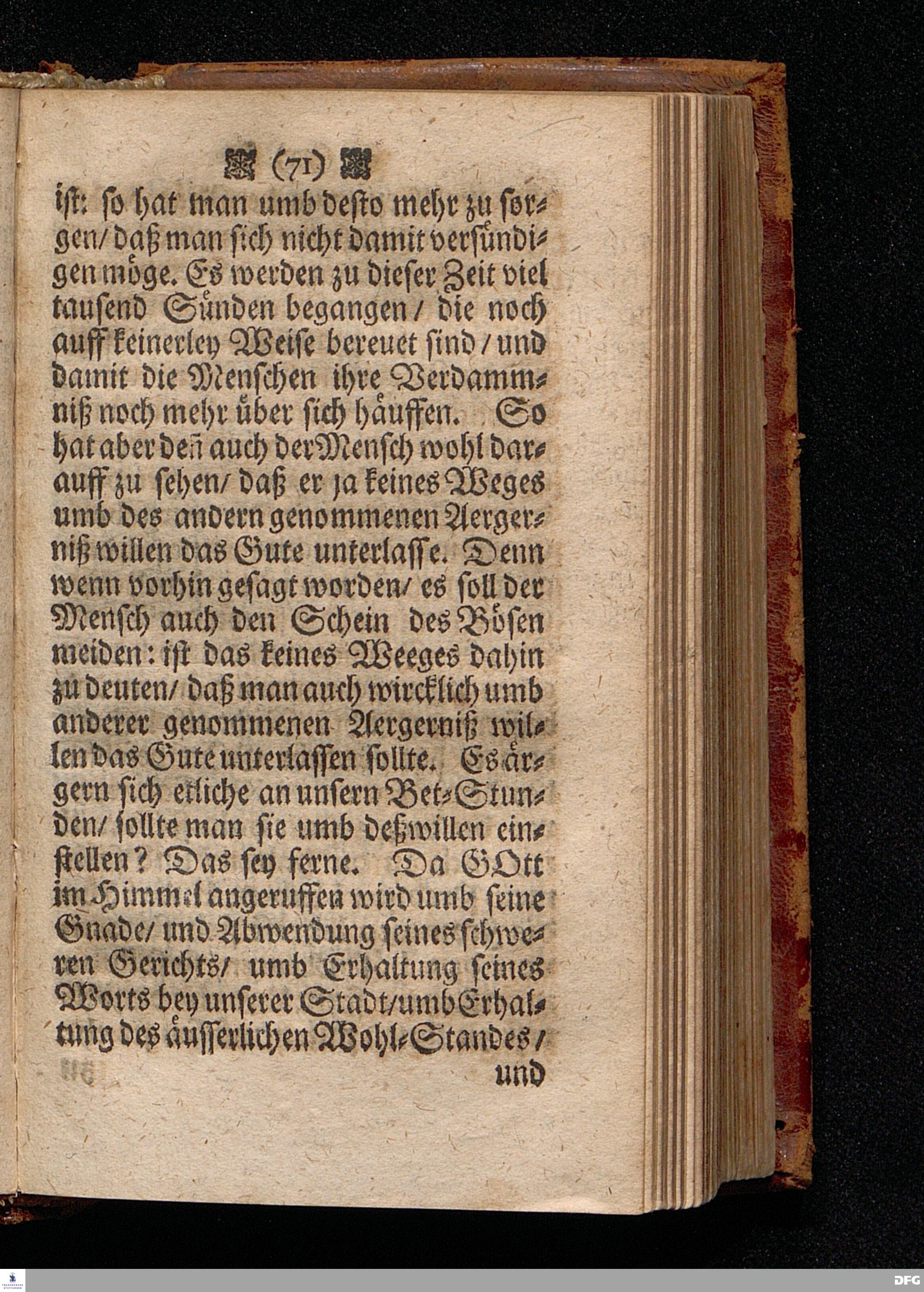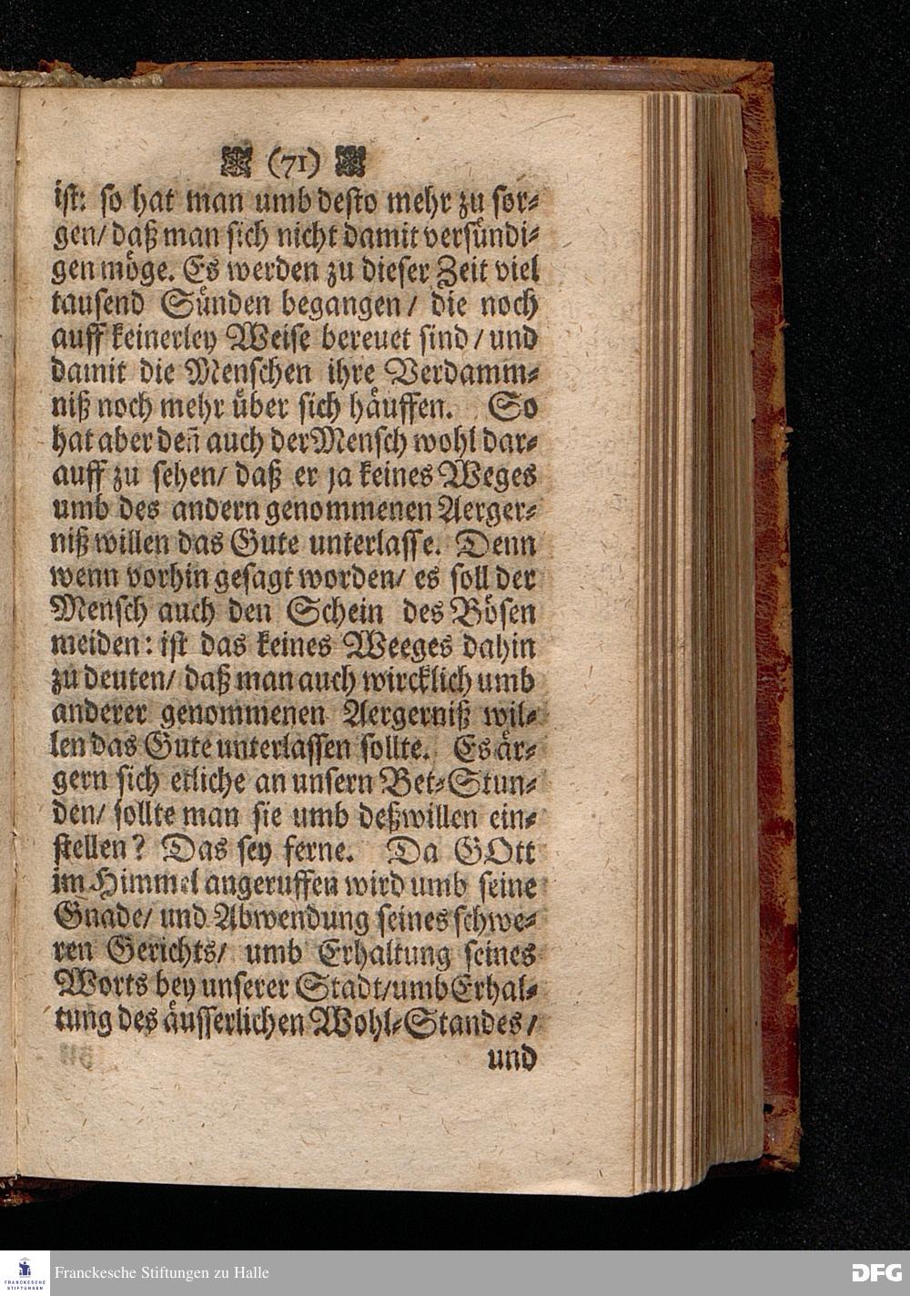 Die Lehre von dem Aergerniß / In einer Predigt Uber das Evangelium Matth. XVIII, v.1==12, am St.Michaëlis Tage Anno 1698, In der St.Georgen=Kirche zu Glaucha an Halle vorgestellet von M.August Hermann Francken / Gr.& OO.LL.P.P.& Past.Glauch. HALLE / Gedruckt bey Christian Henckel / Univers.Buchdr. 1698.
