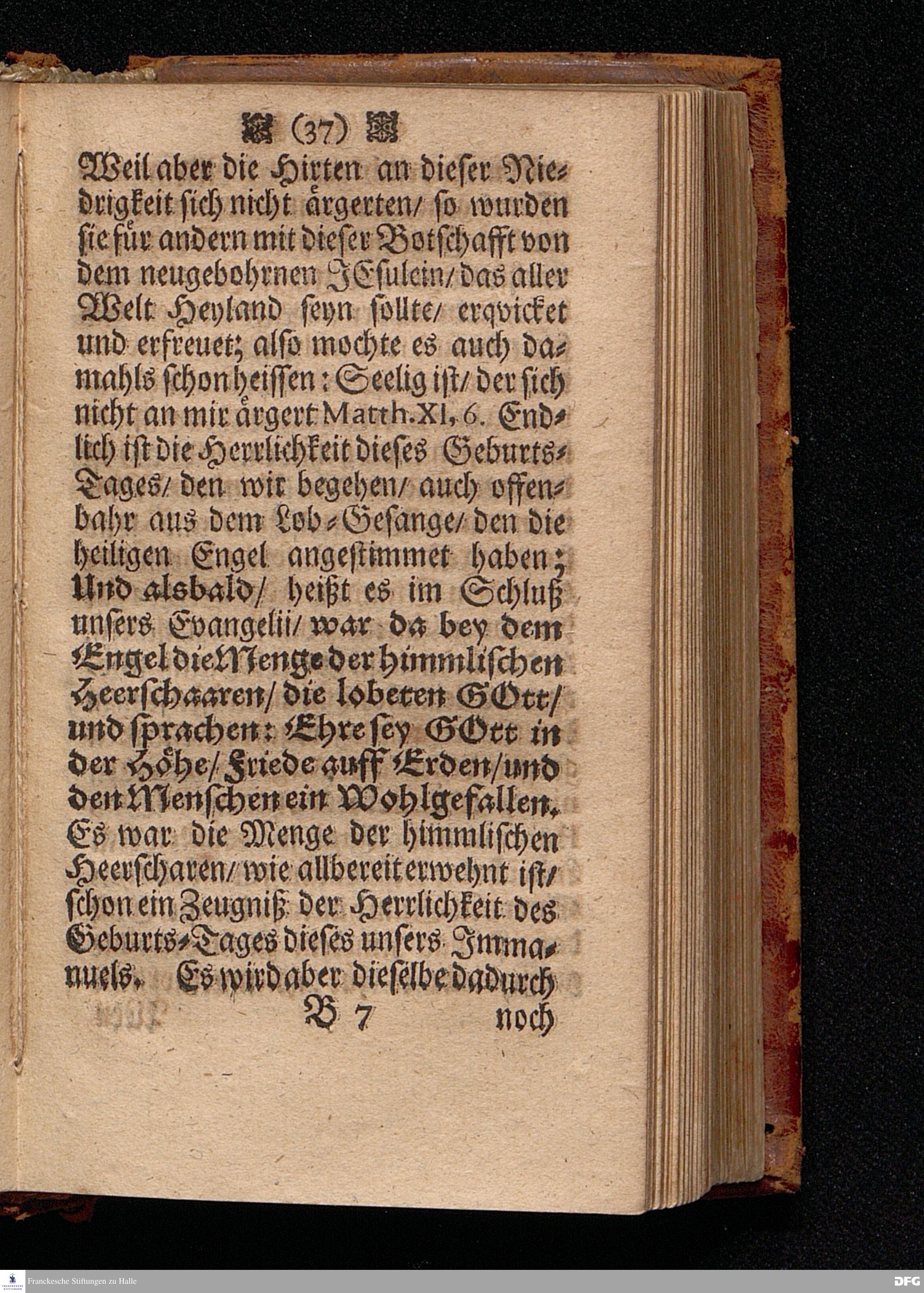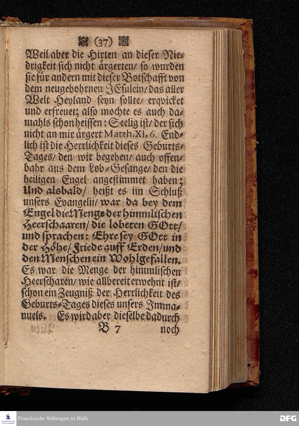 Der Geburts=Tag des I\-manuels Unsers HErrn JEsu Christi / In einer Predigt Uber das Evangelium Luc.II, 1-14. Am Ersten H.Weyhnachts=Tage Anno 1700. In der St.Georgen=Kirche zu Glaucha an Halle vorgestellet von August Hermann Francken / S.S.Theol.P.Ord.& P.Glauch. Halle / In Verleg.des Wäysenhauses.