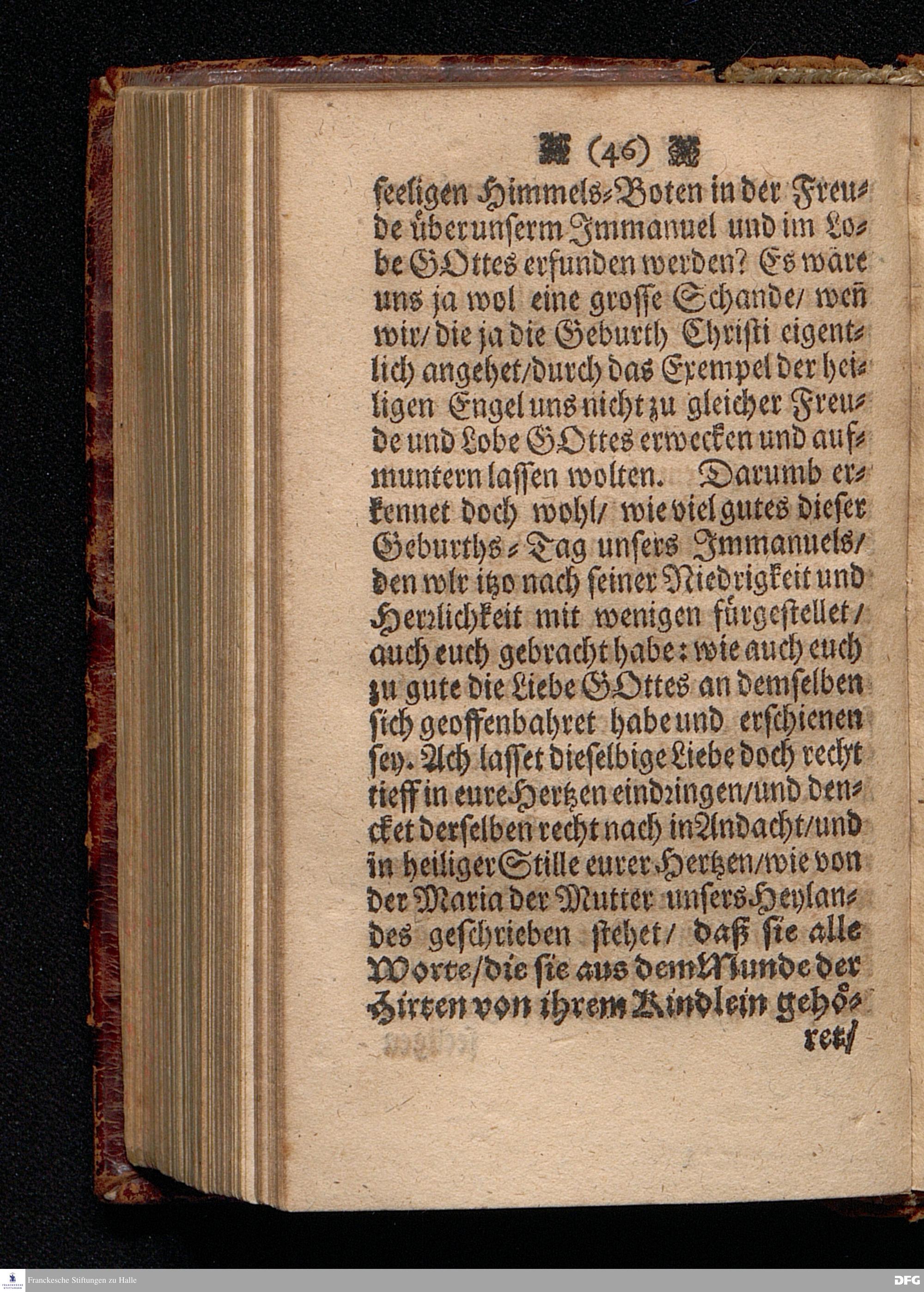 Der Geburts=Tag des I\-manuels Unsers HErrn JEsu Christi / In einer Predigt Uber das Evangelium Luc.II, 1-14. Am Ersten H.Weyhnachts=Tage Anno 1700. In der St.Georgen=Kirche zu Glaucha an Halle vorgestellet von August Hermann Francken / S.S.Theol.P.Ord.& P.Glauch. Halle / In Verleg.des Wäysenhauses.