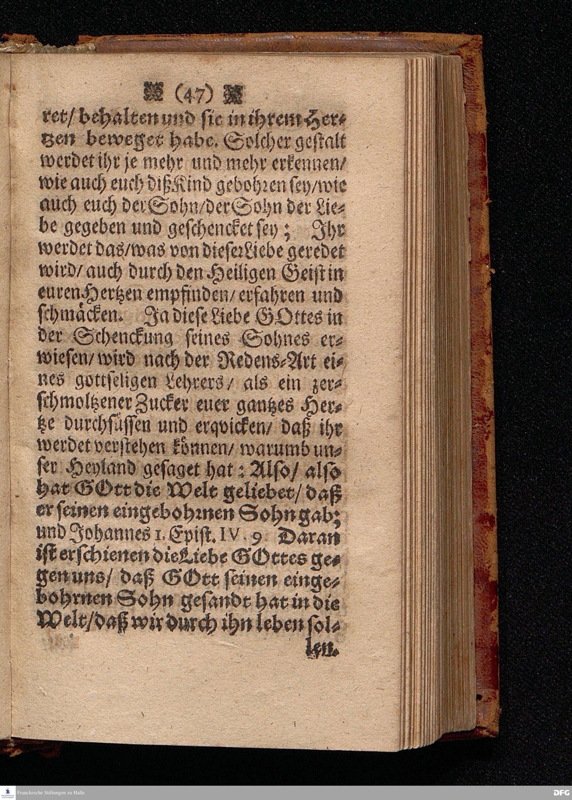 Der Geburts=Tag des I\-manuels Unsers HErrn JEsu Christi / In einer Predigt Uber das Evangelium Luc.II, 1-14. Am Ersten H.Weyhnachts=Tage Anno 1700. In der St.Georgen=Kirche zu Glaucha an Halle vorgestellet von August Hermann Francken / S.S.Theol.P.Ord.& P.Glauch. Halle / In Verleg.des Wäysenhauses.