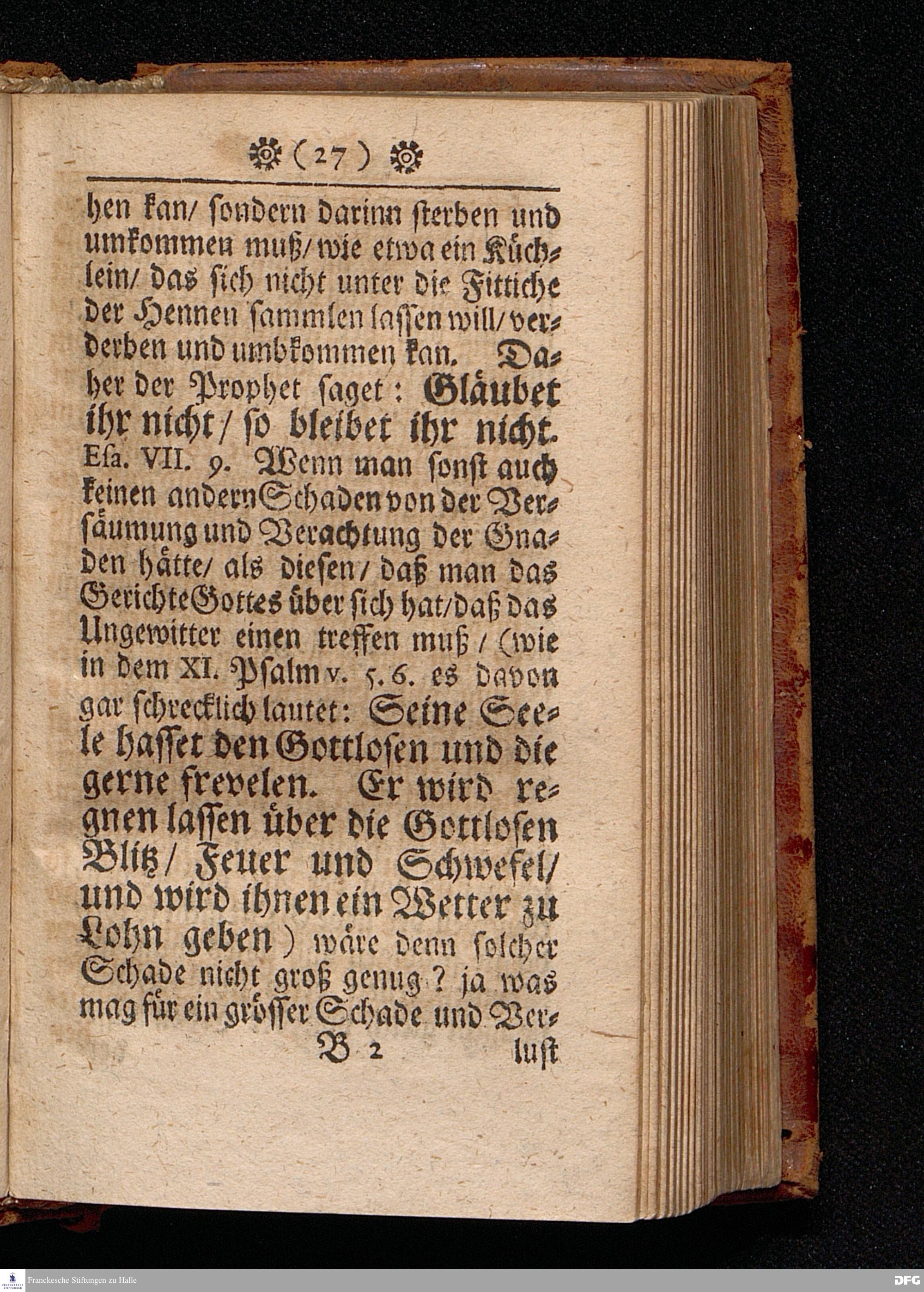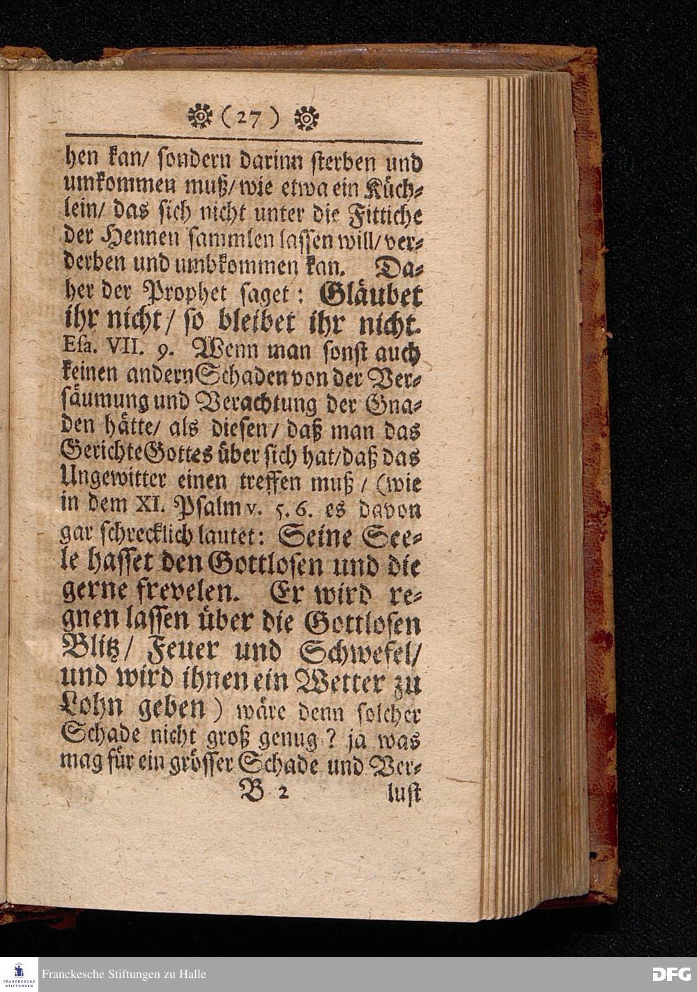 Die Versäumniß alles Guten durch die Versäumniß der Gnade In einer Predigt Uber das Evangelium Matth.XXIII. 34.-39. Am II.Christ=Feyertag / Anno 1701 [vielmehr 1700]. In der St.Georgen=Kirche zu Glaucha an Halle vorgestellet von Aug.Hermann Francken / S.S.Theol.P.Ord.& Past.Glauch. HALLE / Gedruckt bey Johann Grunern / 1702.
