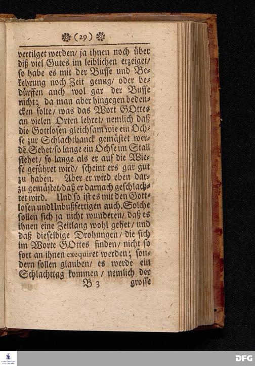 Die Versäumniß alles Guten durch die Versäumniß der Gnade In einer Predigt Uber das Evangelium Matth.XXIII. 34.-39. Am II.Christ=Feyertag / Anno 1701 [vielmehr 1700]. In der St.Georgen=Kirche zu Glaucha an Halle vorgestellet von Aug.Hermann Francken / S.S.Theol.P.Ord.& Past.Glauch. HALLE / Gedruckt bey Johann Grunern / 1702.