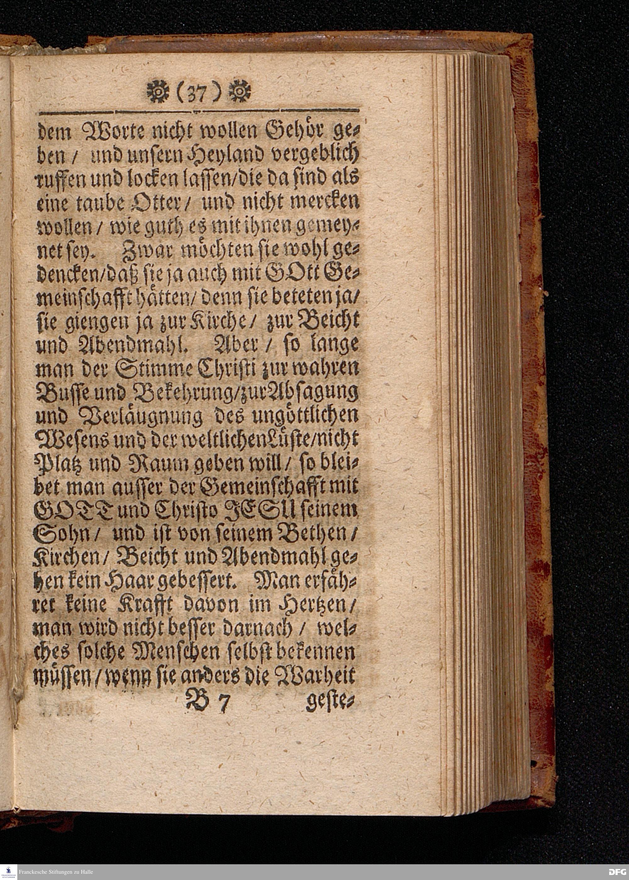 Die Versäumniß alles Guten durch die Versäumniß der Gnade In einer Predigt Uber das Evangelium Matth.XXIII. 34.-39. Am II.Christ=Feyertag / Anno 1701 [vielmehr 1700]. In der St.Georgen=Kirche zu Glaucha an Halle vorgestellet von Aug.Hermann Francken / S.S.Theol.P.Ord.& Past.Glauch. HALLE / Gedruckt bey Johann Grunern / 1702.