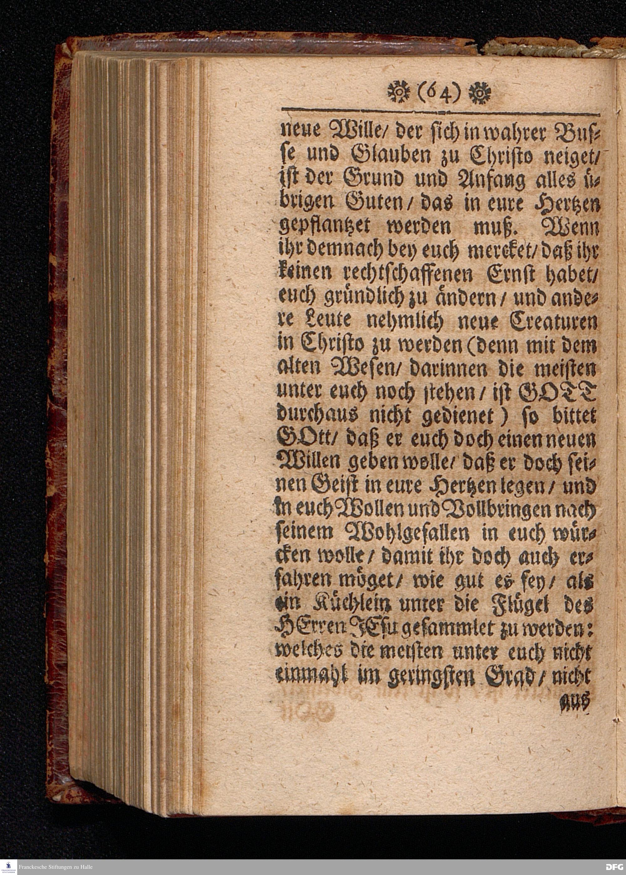 Die Versäumniß alles Guten durch die Versäumniß der Gnade In einer Predigt Uber das Evangelium Matth.XXIII. 34.-39. Am II.Christ=Feyertag / Anno 1701 [vielmehr 1700]. In der St.Georgen=Kirche zu Glaucha an Halle vorgestellet von Aug.Hermann Francken / S.S.Theol.P.Ord.& Past.Glauch. HALLE / Gedruckt bey Johann Grunern / 1702.