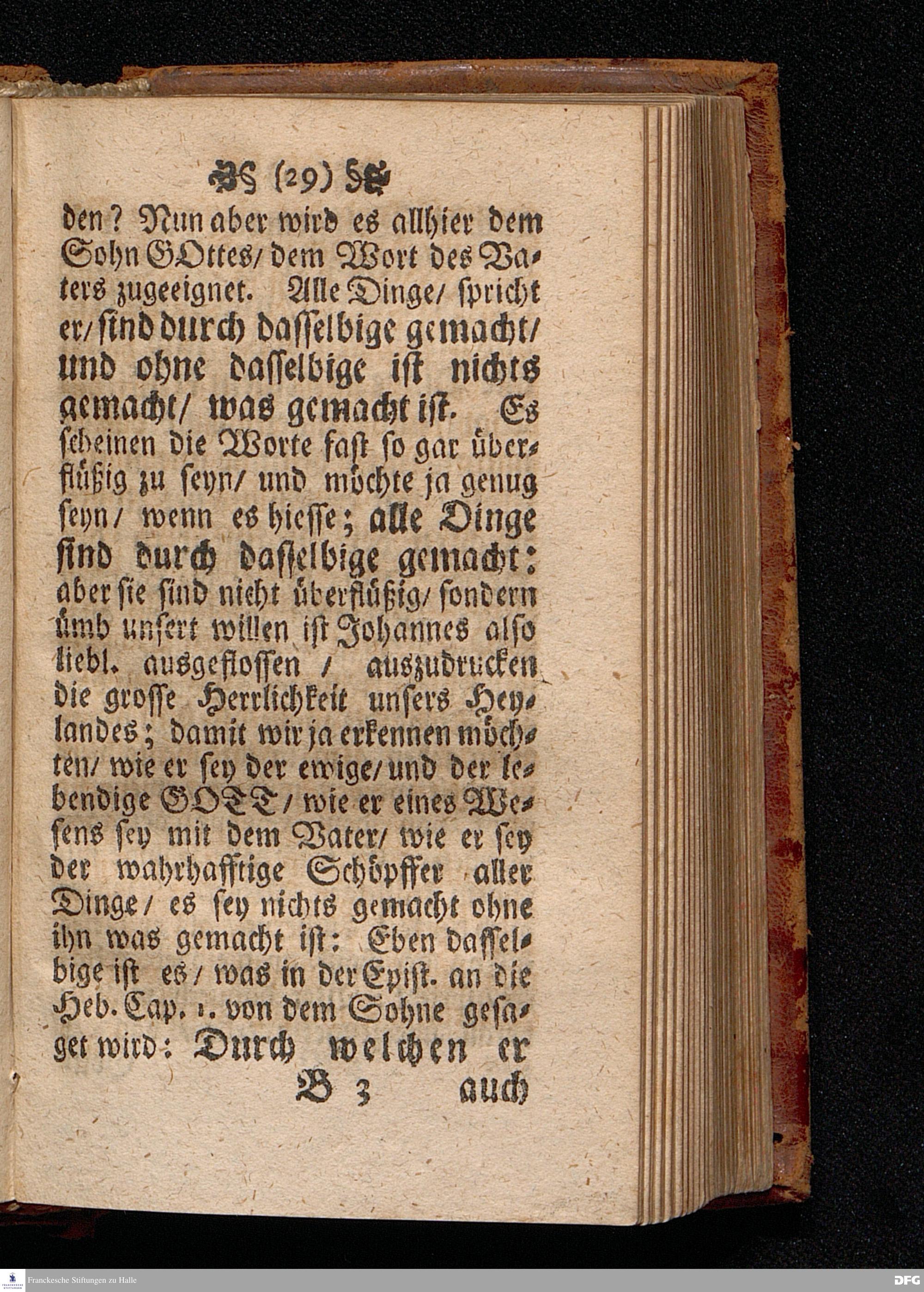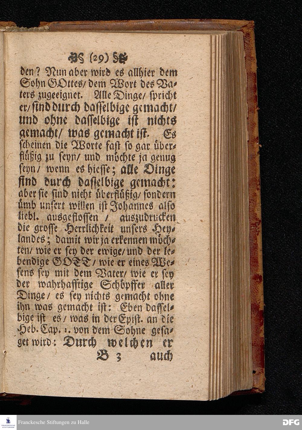 Das Kündlich=grosse Geheimniß Der Gottseeligkeit / Am dritten Weyhenacht=Feyertage ANNO 1698. In einer Predigt Uber das Evangelium Joh.I, 1--14. In der St. Georgen=Kirche zu Glaucha an Halle / vorgestellet von M.August Hermann Francken / S.S.Theol.P.P.Ord.& P.Glauch. HALLE / Gedruckt bey Christoph Salfelden / Königl.Preuß.Hoff-u.Reg.Buchd. 1702