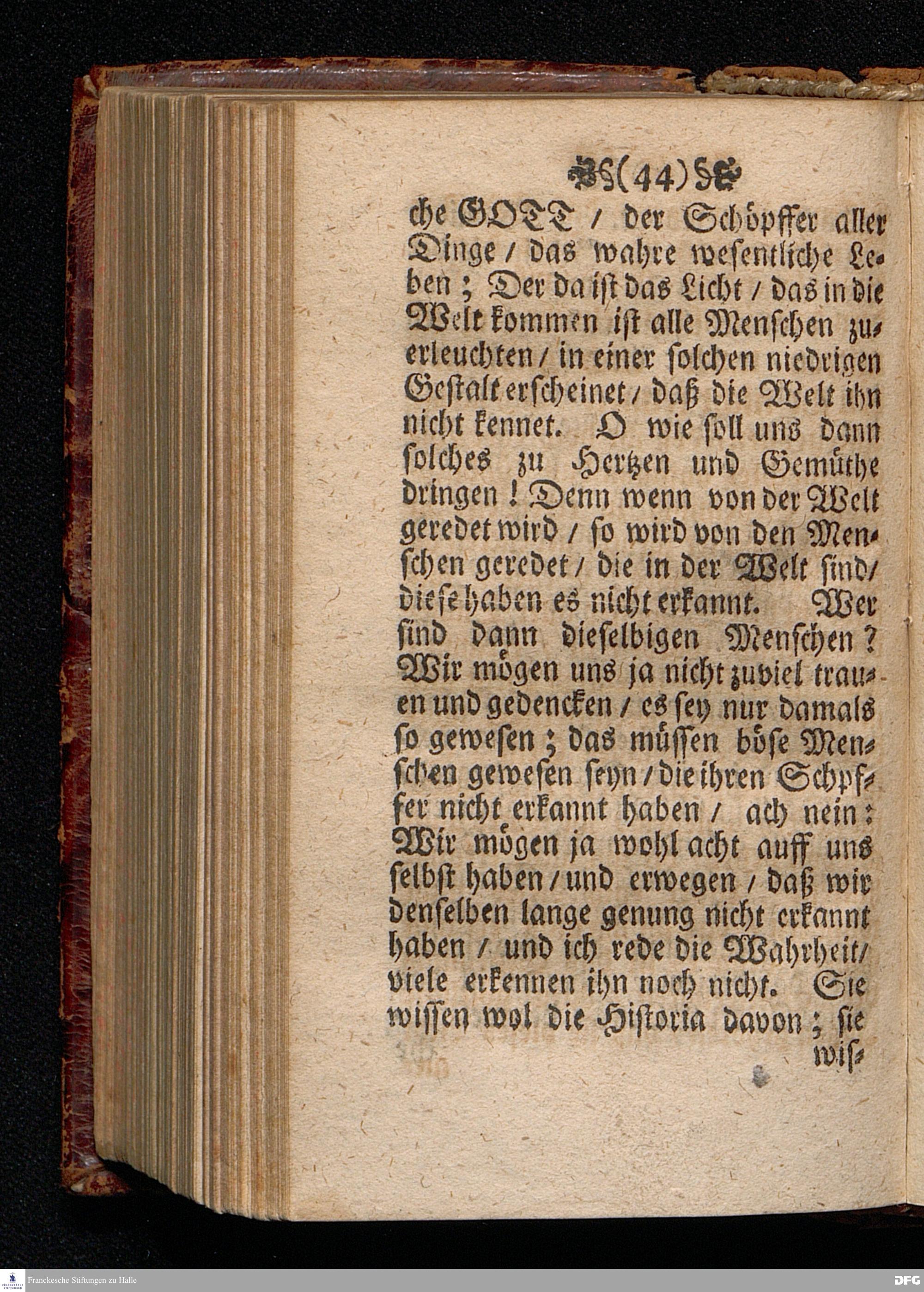 Das Kündlich=grosse Geheimniß Der Gottseeligkeit / Am dritten Weyhenacht=Feyertage ANNO 1698. In einer Predigt Uber das Evangelium Joh.I, 1--14. In der St. Georgen=Kirche zu Glaucha an Halle / vorgestellet von M.August Hermann Francken / S.S.Theol.P.P.Ord.& P.Glauch. HALLE / Gedruckt bey Christoph Salfelden / Königl.Preuß.Hoff-u.Reg.Buchd. 1702