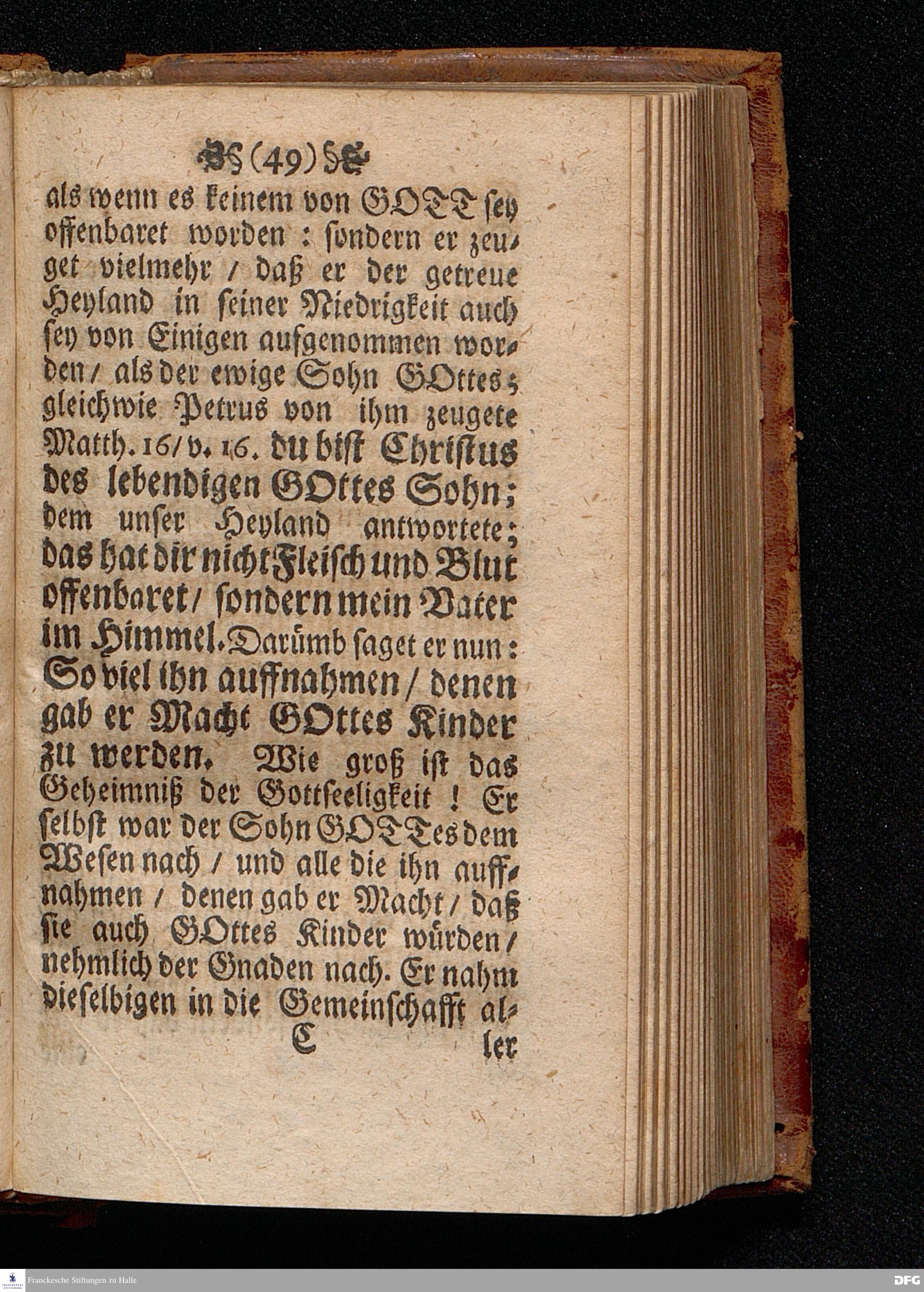 Das Kündlich=grosse Geheimniß Der Gottseeligkeit / Am dritten Weyhenacht=Feyertage ANNO 1698. In einer Predigt Uber das Evangelium Joh.I, 1--14. In der St. Georgen=Kirche zu Glaucha an Halle / vorgestellet von M.August Hermann Francken / S.S.Theol.P.P.Ord.& P.Glauch. HALLE / Gedruckt bey Christoph Salfelden / Königl.Preuß.Hoff-u.Reg.Buchd. 1702