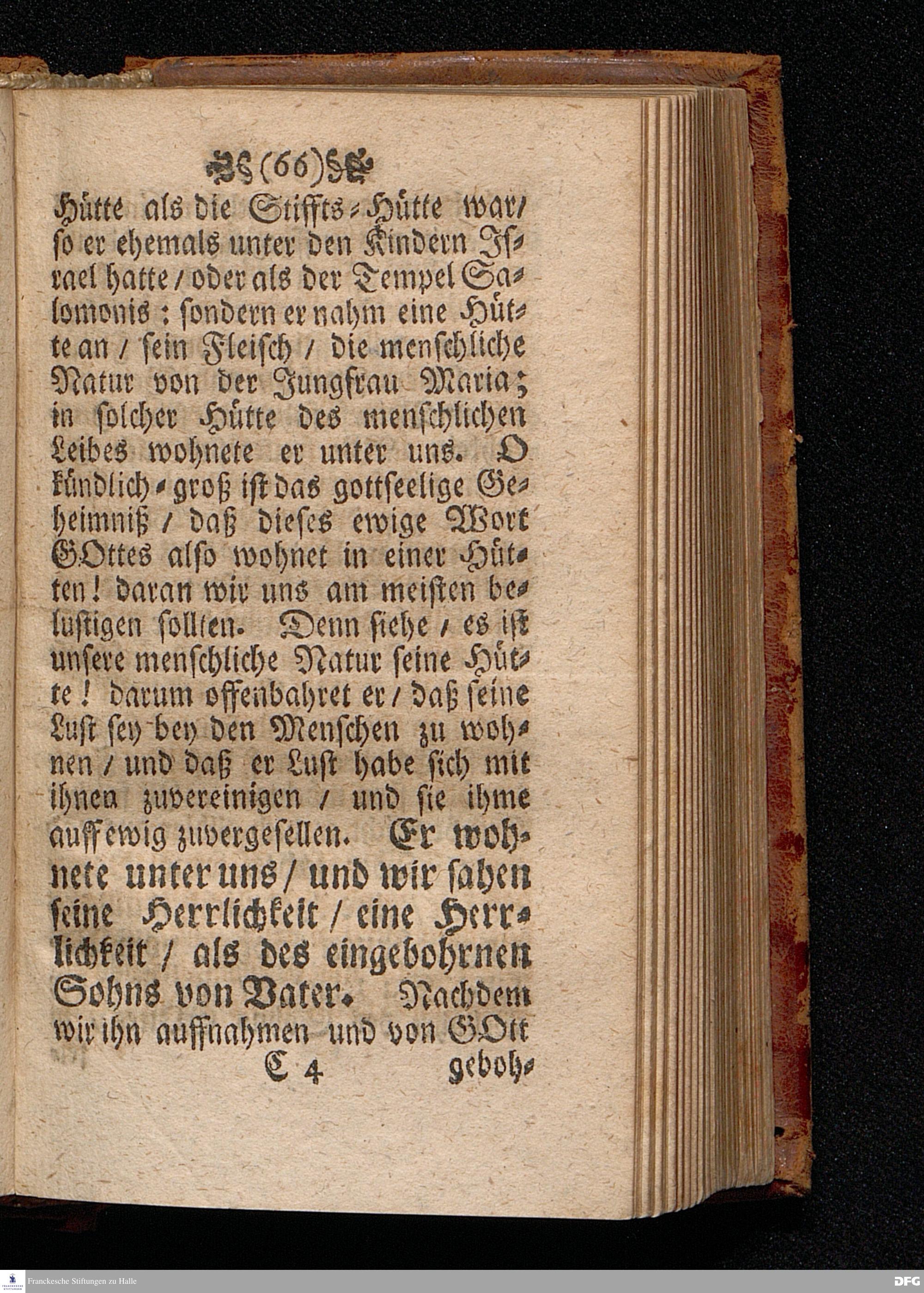 Das Kündlich=grosse Geheimniß Der Gottseeligkeit / Am dritten Weyhenacht=Feyertage ANNO 1698. In einer Predigt Uber das Evangelium Joh.I, 1--14. In der St. Georgen=Kirche zu Glaucha an Halle / vorgestellet von M.August Hermann Francken / S.S.Theol.P.P.Ord.& P.Glauch. HALLE / Gedruckt bey Christoph Salfelden / Königl.Preuß.Hoff-u.Reg.Buchd. 1702