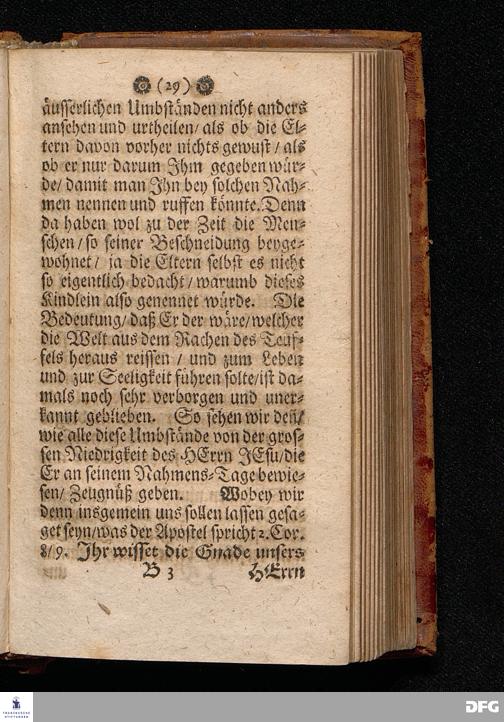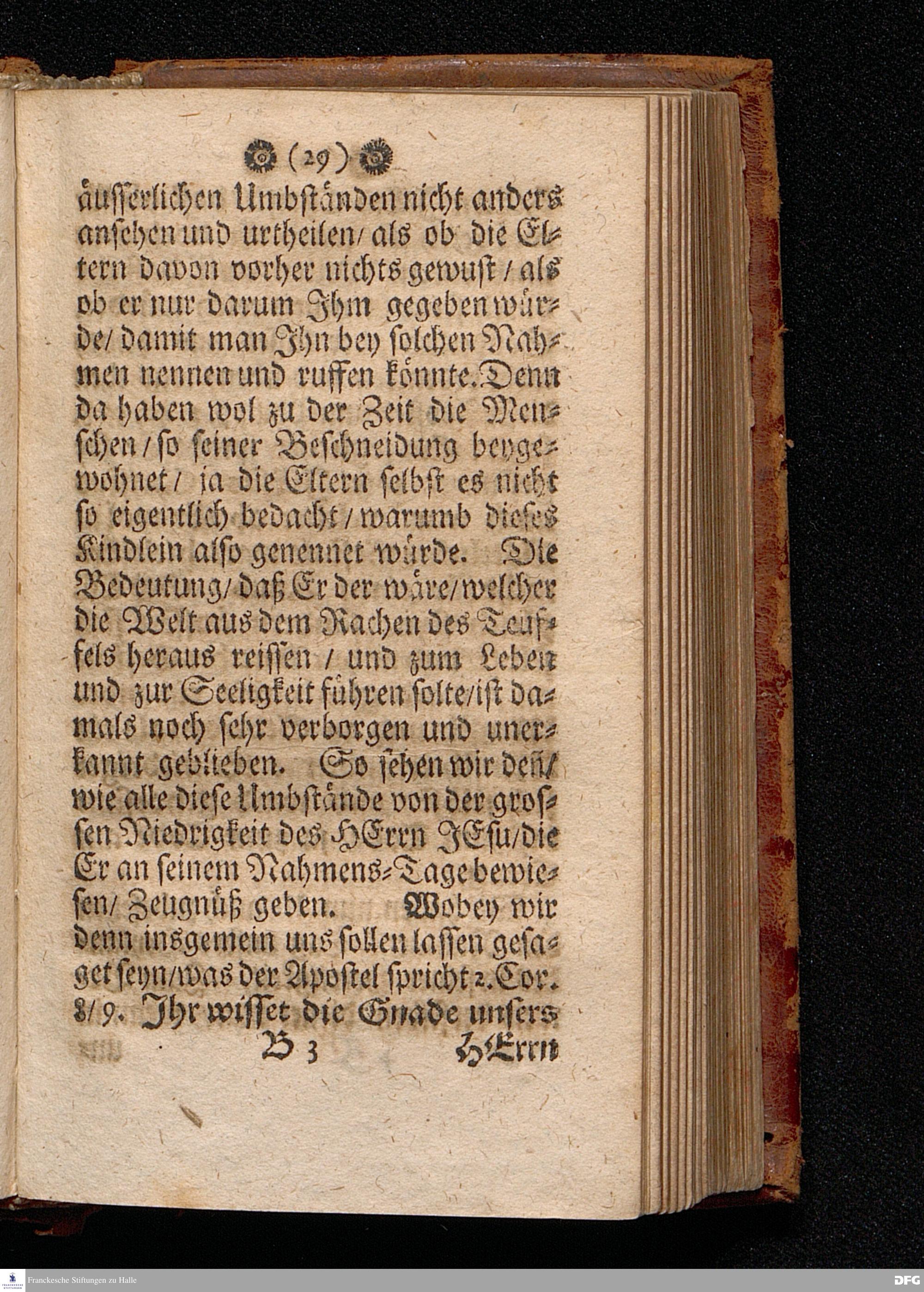 Der Nahmens=Tag Des HErrn JEsu In seiner Niedrigkeit und Herrligkeit / In einer Predigt Uber das Evangelium Luc.II, v.21. Am Neuen Jahrs Tage Anno 1701. In der St.Georgen=Kirche zu Glaucha an Halle vorgestellet von M.Aug.Hermann Francken / SS.Theol.P.Ord.& P.Glauch. HALLE / Gedruckt bey Christian Henckeln / Univers. Buchdr. 1702.
