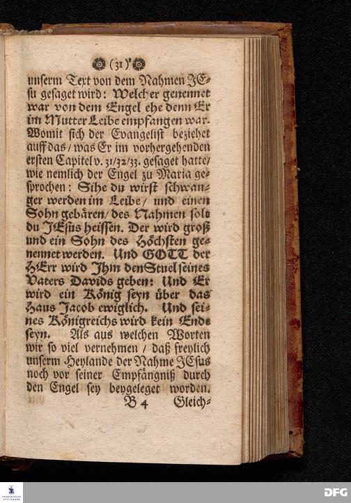 Der Nahmens=Tag Des HErrn JEsu In seiner Niedrigkeit und Herrligkeit / In einer Predigt Uber das Evangelium Luc.II, v.21. Am Neuen Jahrs Tage Anno 1701. In der St.Georgen=Kirche zu Glaucha an Halle vorgestellet von M.Aug.Hermann Francken / SS.Theol.P.Ord.& P.Glauch. HALLE / Gedruckt bey Christian Henckeln / Univers. Buchdr. 1702.