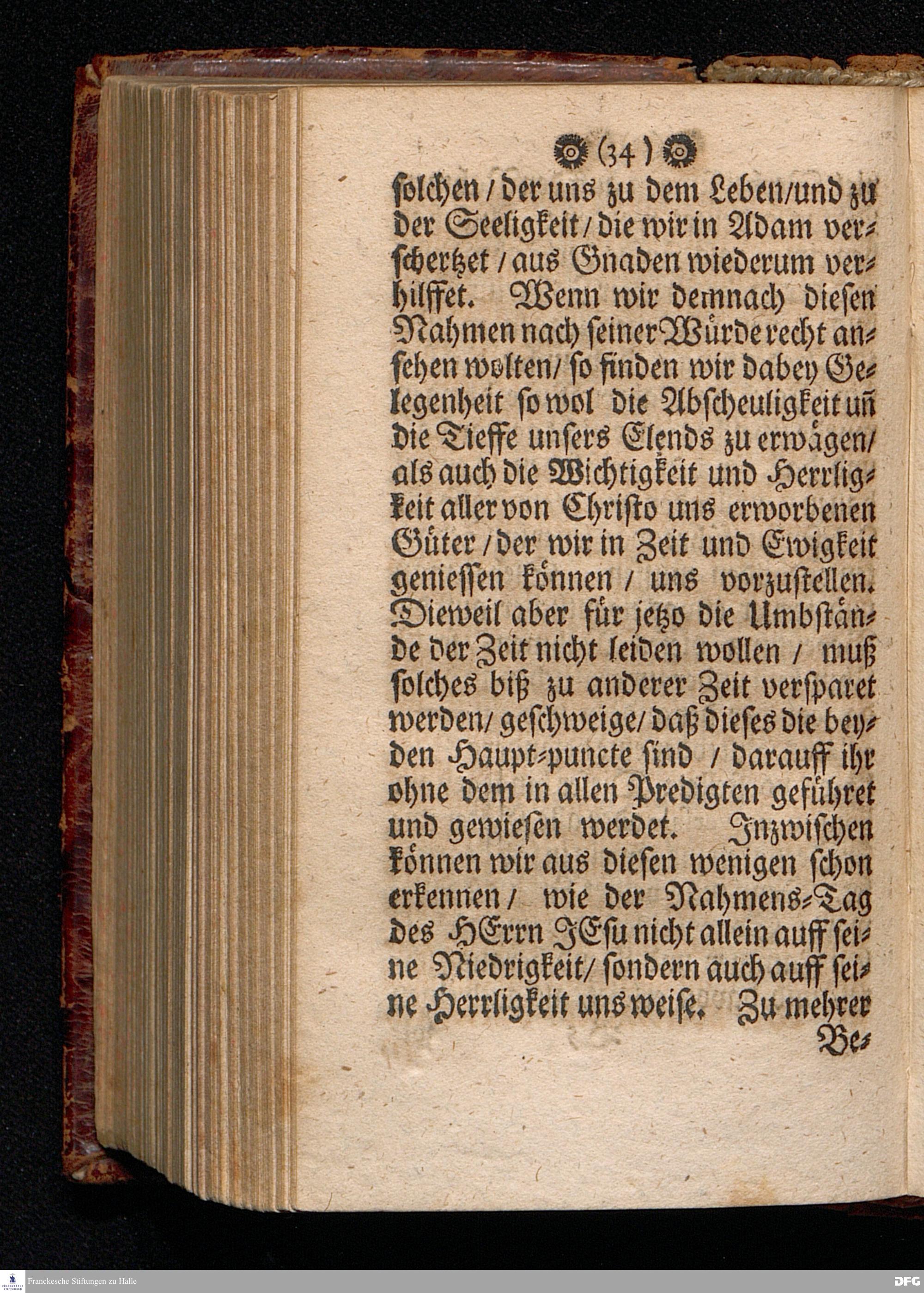 Der Nahmens=Tag Des HErrn JEsu In seiner Niedrigkeit und Herrligkeit / In einer Predigt Uber das Evangelium Luc.II, v.21. Am Neuen Jahrs Tage Anno 1701. In der St.Georgen=Kirche zu Glaucha an Halle vorgestellet von M.Aug.Hermann Francken / SS.Theol.P.Ord.& P.Glauch. HALLE / Gedruckt bey Christian Henckeln / Univers. Buchdr. 1702.