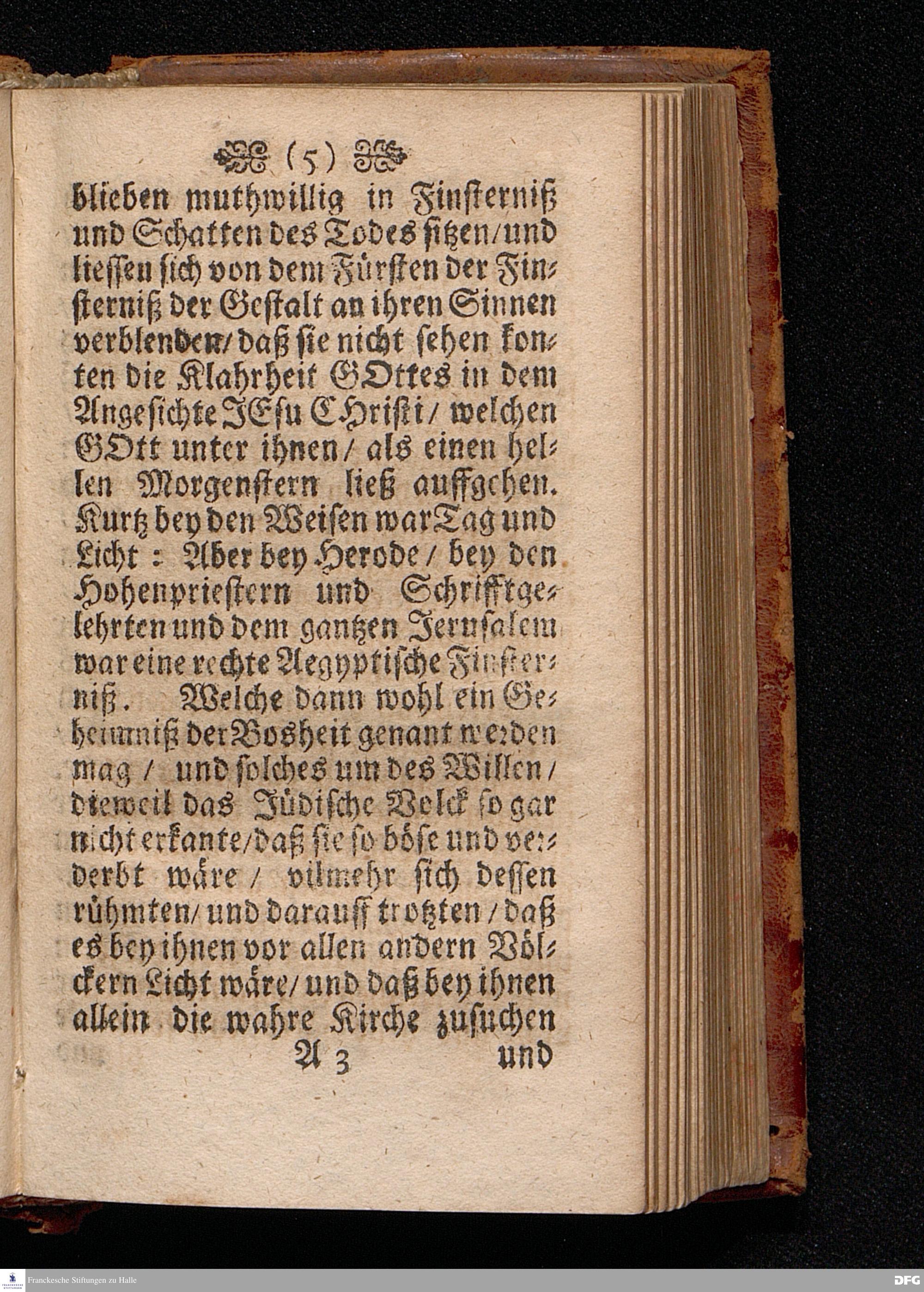 Das Geheimniß der Boßheit Am Fest der Erscheinung Anno 1699 in einer Predigt Uber das Evangelium Matth.II.v.1-12. In der St.Georgen Kirche zu Glaucha an Halle vorgestellet von August Hermann Francken S.S.Theol.P.Ord.& P.Glauch. HALLE / Druckts Christian Henckel / Univ.Buchdr.1701.