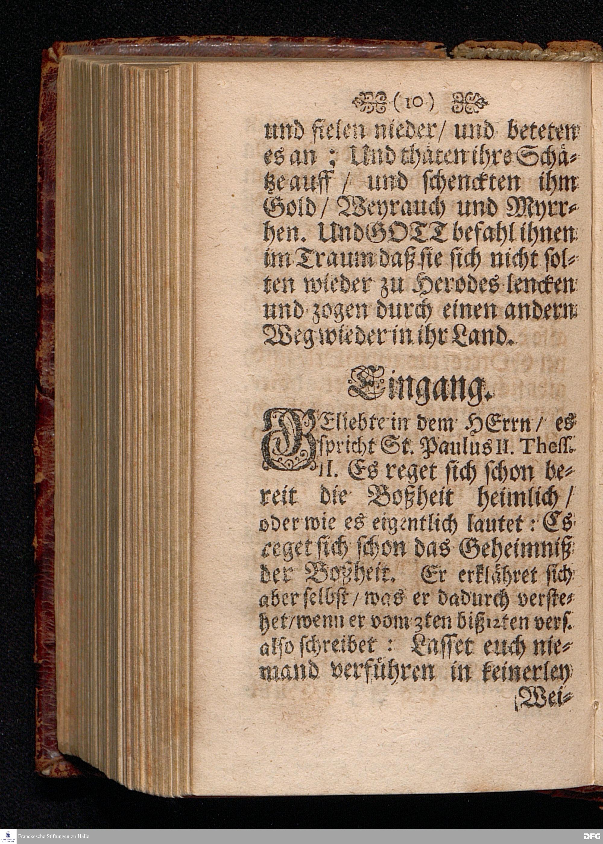 Das Geheimniß der Boßheit Am Fest der Erscheinung Anno 1699 in einer Predigt Uber das Evangelium Matth.II.v.1-12. In der St.Georgen Kirche zu Glaucha an Halle vorgestellet von August Hermann Francken S.S.Theol.P.Ord.& P.Glauch. HALLE / Druckts Christian Henckel / Univ.Buchdr.1701.