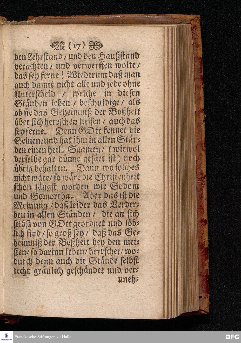 Das Geheimniß der Boßheit Am Fest der Erscheinung Anno 1699 in einer Predigt Uber das Evangelium Matth.II.v.1-12. In der St.Georgen Kirche zu Glaucha an Halle vorgestellet von August Hermann Francken S.S.Theol.P.Ord.& P.Glauch. HALLE / Druckts Christian Henckel / Univ.Buchdr.1701.