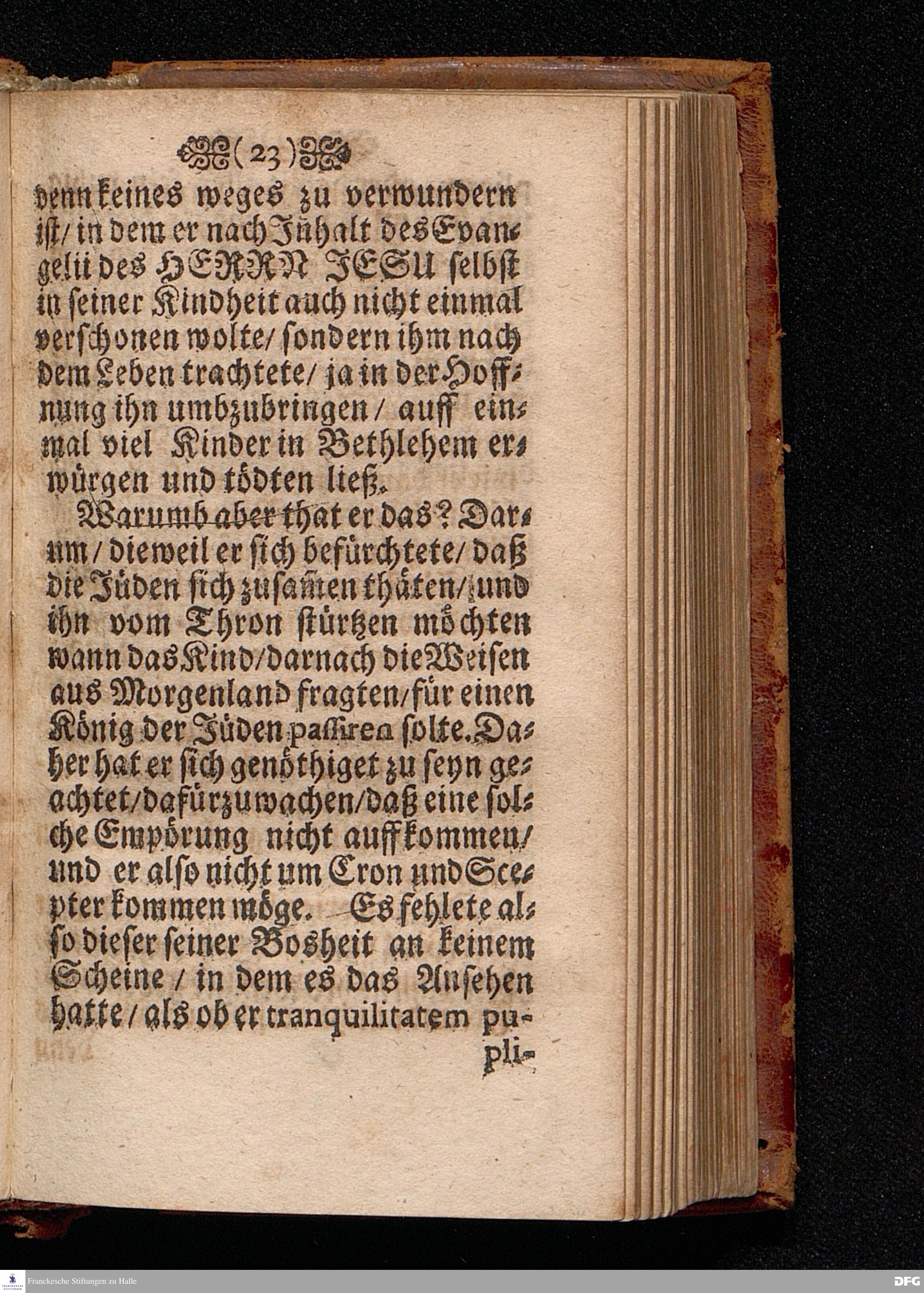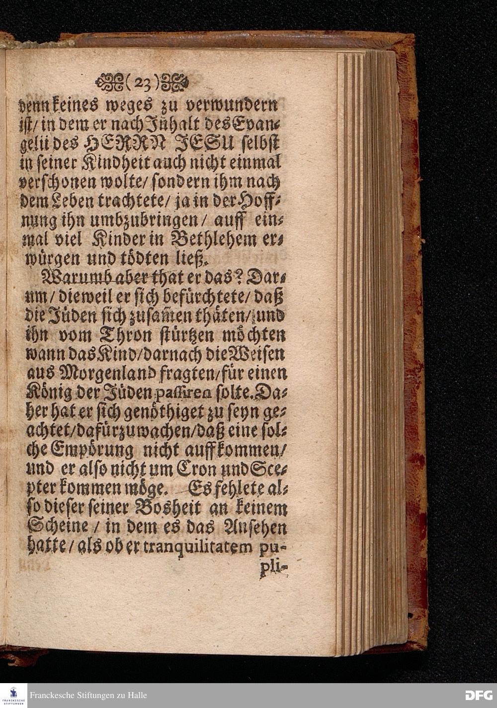 Das Geheimniß der Boßheit Am Fest der Erscheinung Anno 1699 in einer Predigt Uber das Evangelium Matth.II.v.1-12. In der St.Georgen Kirche zu Glaucha an Halle vorgestellet von August Hermann Francken S.S.Theol.P.Ord.& P.Glauch. HALLE / Druckts Christian Henckel / Univ.Buchdr.1701.