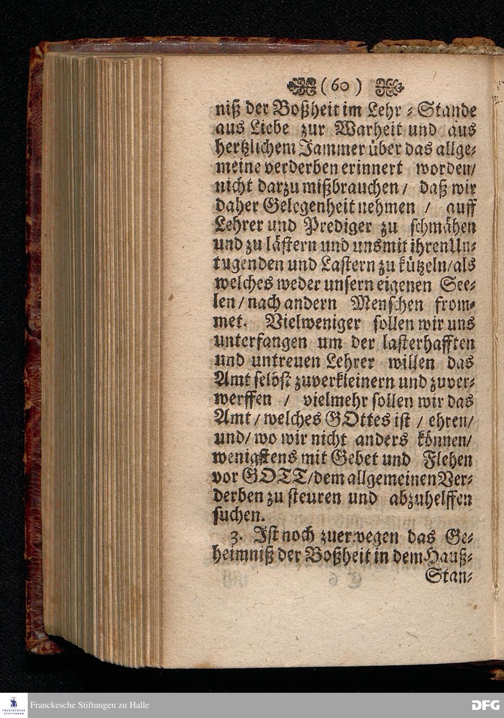 Das Geheimniß der Boßheit Am Fest der Erscheinung Anno 1699 in einer Predigt Uber das Evangelium Matth.II.v.1-12. In der St.Georgen Kirche zu Glaucha an Halle vorgestellet von August Hermann Francken S.S.Theol.P.Ord.& P.Glauch. HALLE / Druckts Christian Henckel / Univ.Buchdr.1701.