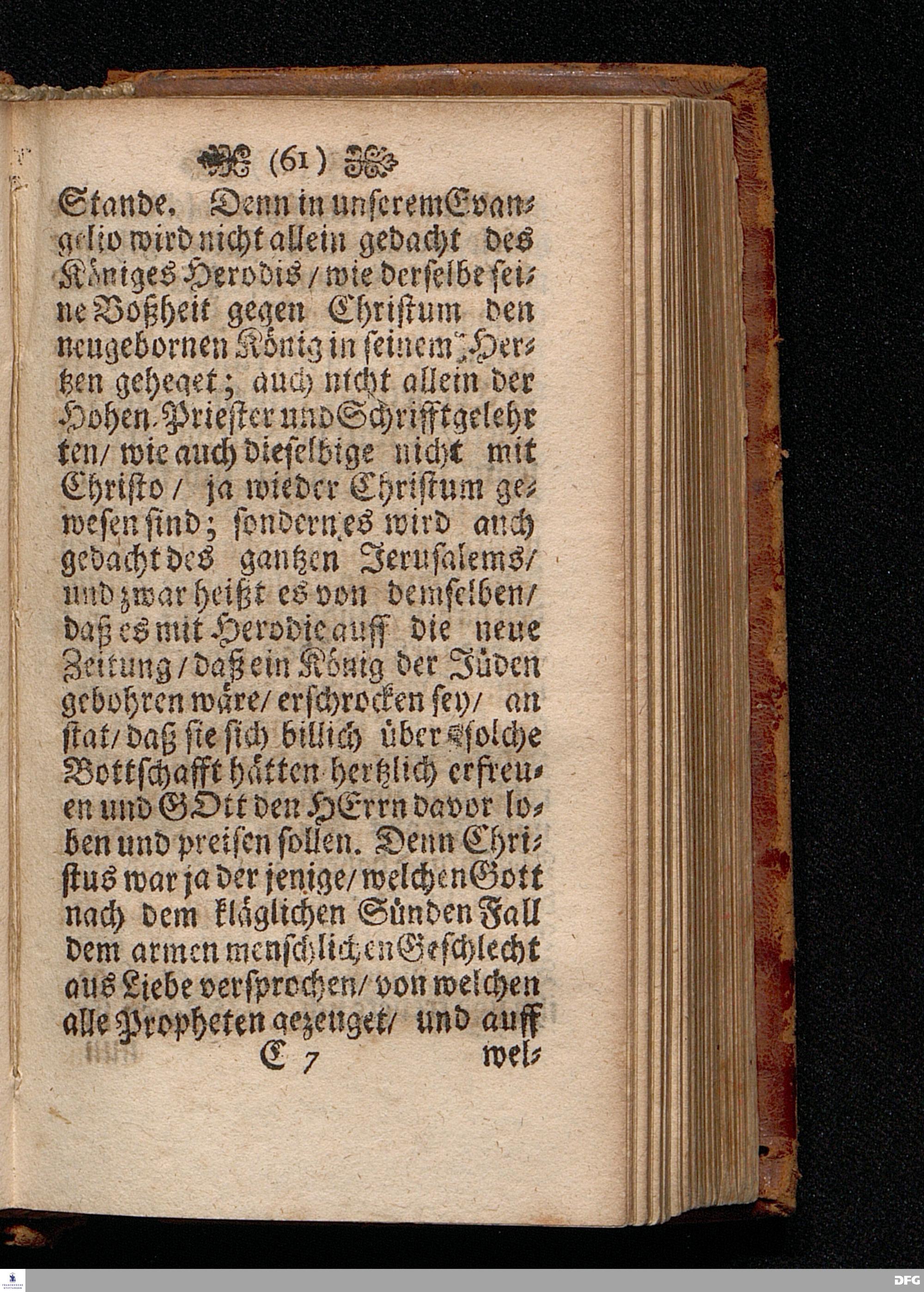 Das Geheimniß der Boßheit Am Fest der Erscheinung Anno 1699 in einer Predigt Uber das Evangelium Matth.II.v.1-12. In der St.Georgen Kirche zu Glaucha an Halle vorgestellet von August Hermann Francken S.S.Theol.P.Ord.& P.Glauch. HALLE / Druckts Christian Henckel / Univ.Buchdr.1701.