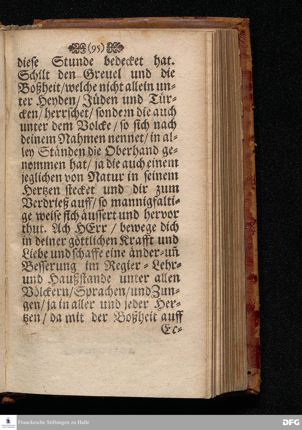 Das Geheimniß der Boßheit Am Fest der Erscheinung Anno 1699 in einer Predigt Uber das Evangelium Matth.II.v.1-12. In der St.Georgen Kirche zu Glaucha an Halle vorgestellet von August Hermann Francken S.S.Theol.P.Ord.& P.Glauch. HALLE / Druckts Christian Henckel / Univ.Buchdr.1701.