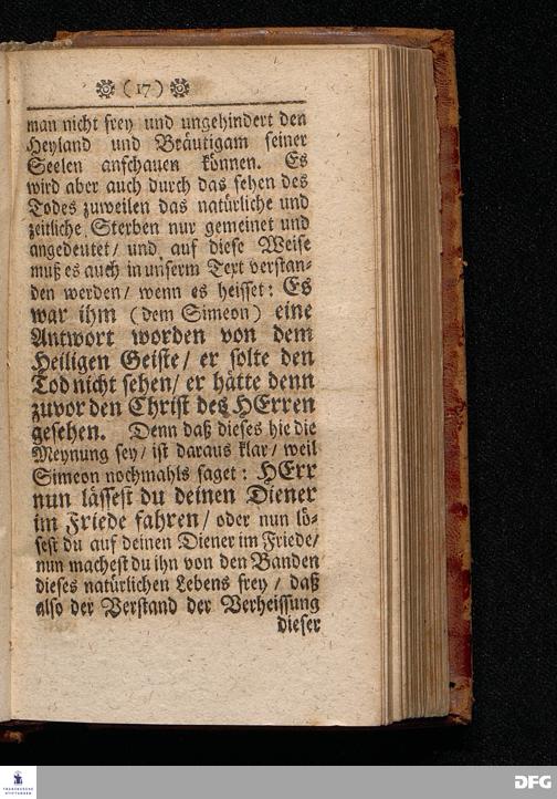 Die Hinfarth im Friede / Oder Der selige Tod / In einer Predigt Uber das Evangelium Luc.II, v.22-32. Am Fest=Tage der Reinigung Mariä / sonst Lichtmeß genannt / Anno 1701. In der St.Georgen=Kirche zu Glaucha an Halle vorgestellet von Aug.Hermann Francken / S.S.Theol.P.P.Ord.& Past. Glauch. HALLE / gedruckt bey Johann Grunern / 1702.