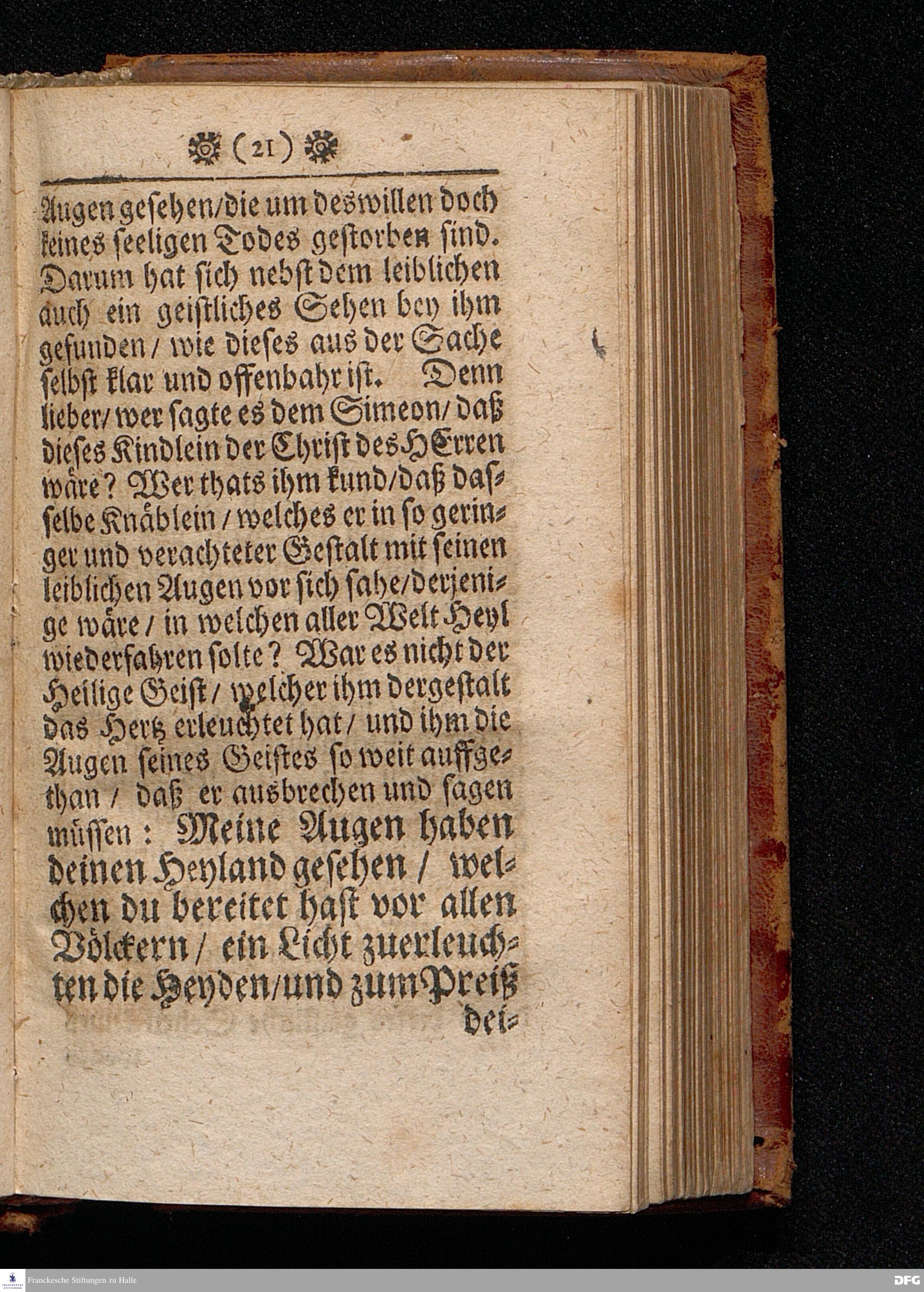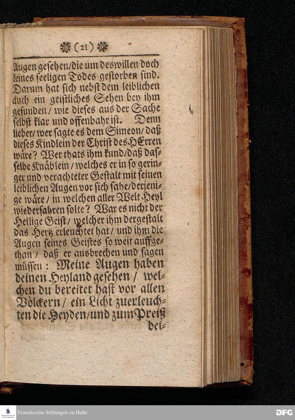 Die Hinfarth im Friede / Oder Der selige Tod / In einer Predigt Uber das Evangelium Luc.II, v.22-32. Am Fest=Tage der Reinigung Mariä / sonst Lichtmeß genannt / Anno 1701. In der St.Georgen=Kirche zu Glaucha an Halle vorgestellet von Aug.Hermann Francken / S.S.Theol.P.P.Ord.& Past. Glauch. HALLE / gedruckt bey Johann Grunern / 1702.