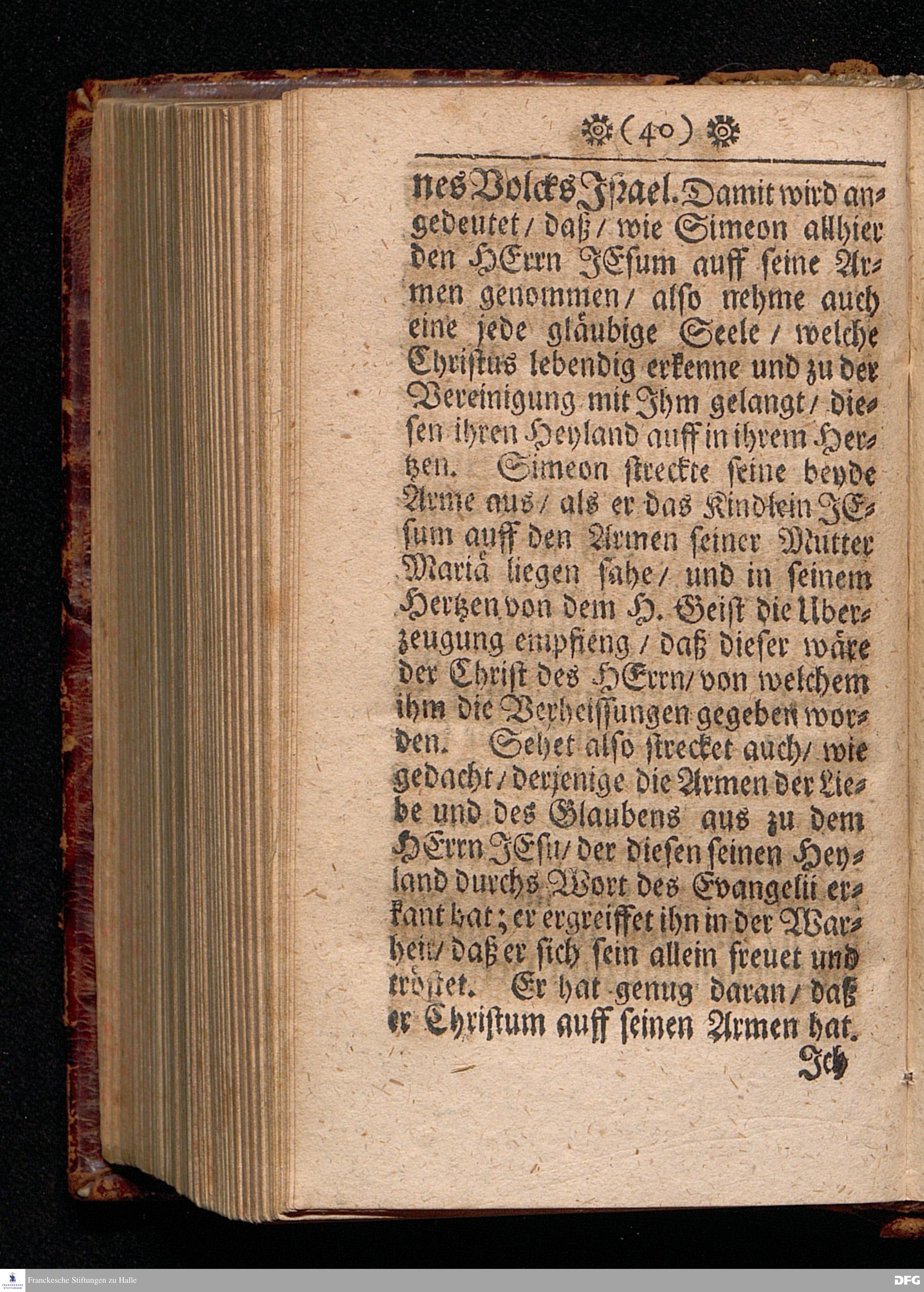 Die Hinfarth im Friede / Oder Der selige Tod / In einer Predigt Uber das Evangelium Luc.II, v.22-32. Am Fest=Tage der Reinigung Mariä / sonst Lichtmeß genannt / Anno 1701. In der St.Georgen=Kirche zu Glaucha an Halle vorgestellet von Aug.Hermann Francken / S.S.Theol.P.P.Ord.& Past. Glauch. HALLE / gedruckt bey Johann Grunern / 1702.