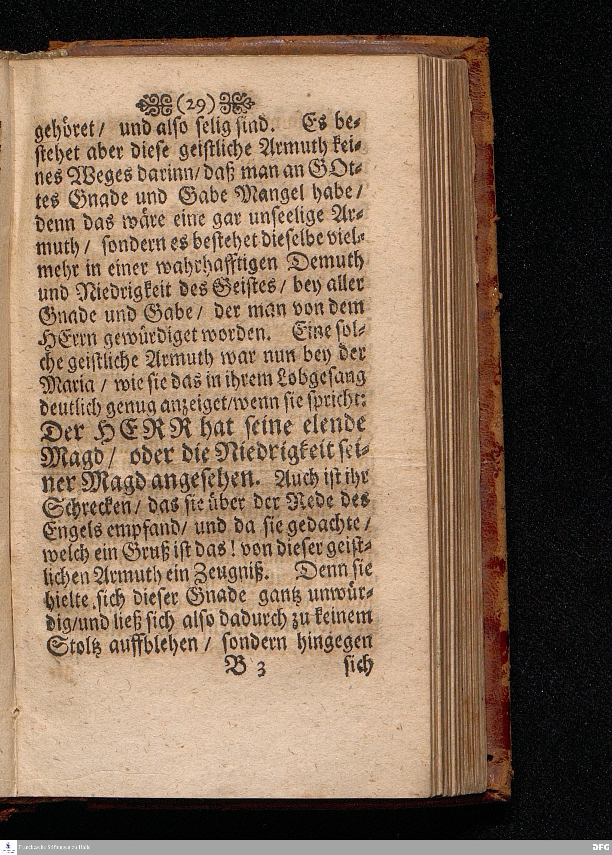 Die Annehmumg Des Evangelii In einer Predigt Uber das Evangelium Luc.I, vers.26=38. Am Festage der Verkündigung Mariä Anno 1699. In der St.Georgen=Kirche zu Glaucha an Halle vorgestellet von M.August Hermann Francken / SS.Theol.Prof.Ord & P.Glauch. HALLE Gedruckt bey Johann Grunerten / Univers.Buchdr. 1702.