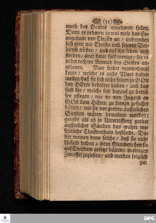 Die Annehmumg Des Evangelii In einer Predigt Uber das Evangelium Luc.I, vers.26=38. Am Festage der Verkündigung Mariä Anno 1699. In der St.Georgen=Kirche zu Glaucha an Halle vorgestellet von M.August Hermann Francken / SS.Theol.Prof.Ord & P.Glauch. HALLE Gedruckt bey Johann Grunerten / Univers.Buchdr. 1702.