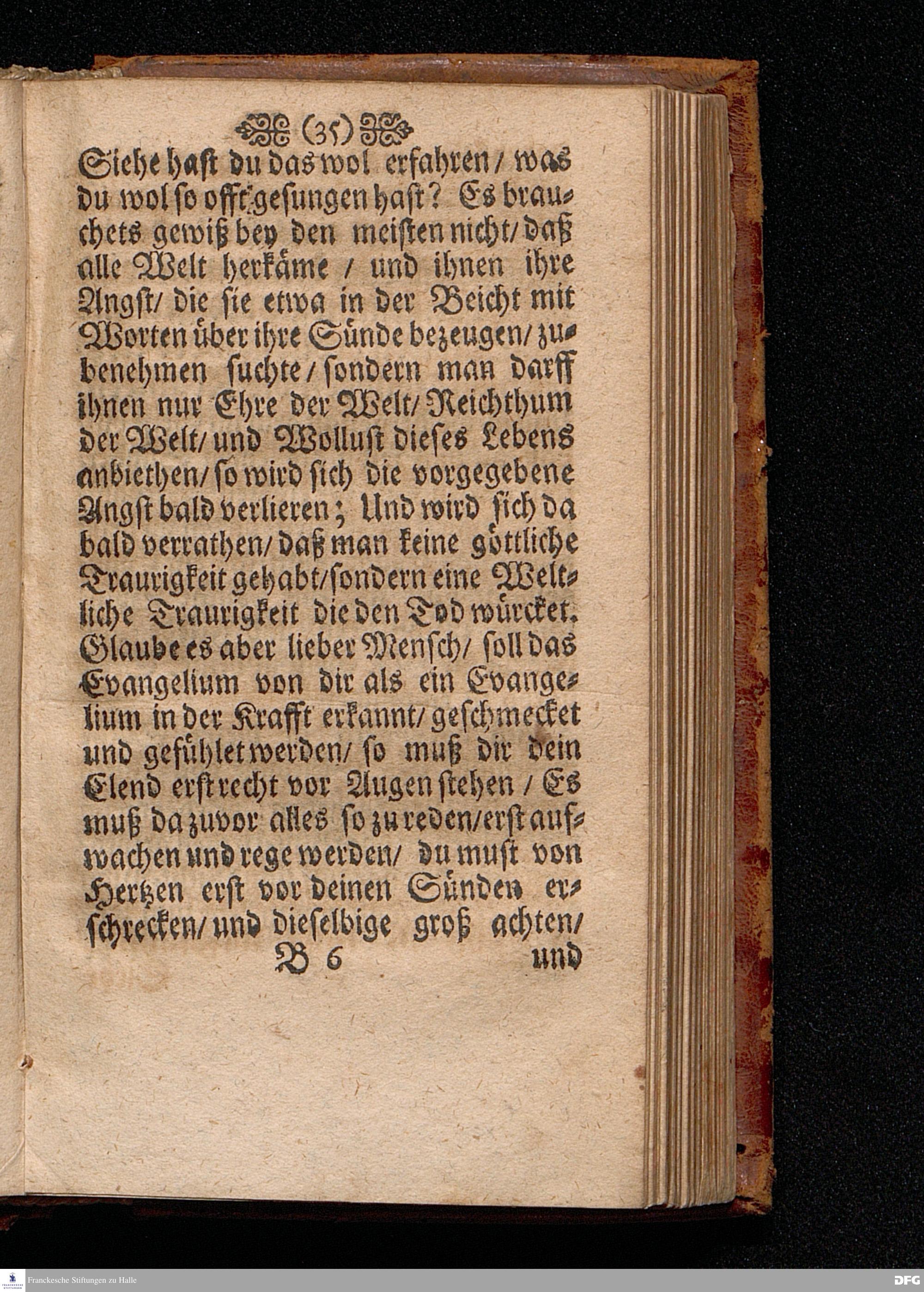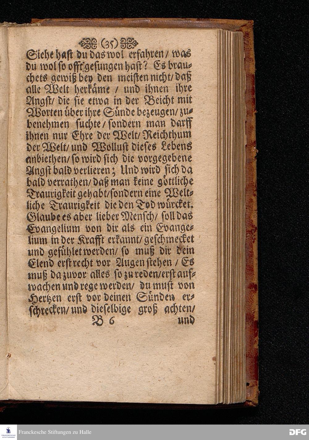 Die Annehmumg Des Evangelii In einer Predigt Uber das Evangelium Luc.I, vers.26=38. Am Festage der Verkündigung Mariä Anno 1699. In der St.Georgen=Kirche zu Glaucha an Halle vorgestellet von M.August Hermann Francken / SS.Theol.Prof.Ord & P.Glauch. HALLE Gedruckt bey Johann Grunerten / Univers.Buchdr. 1702.