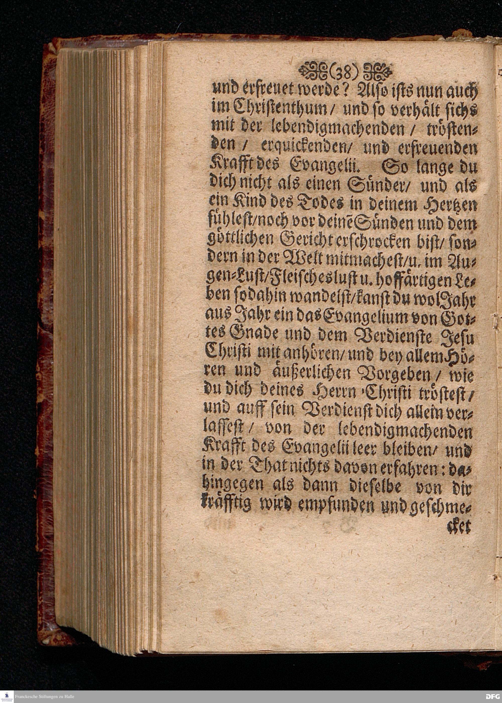 Die Annehmumg Des Evangelii In einer Predigt Uber das Evangelium Luc.I, vers.26=38. Am Festage der Verkündigung Mariä Anno 1699. In der St.Georgen=Kirche zu Glaucha an Halle vorgestellet von M.August Hermann Francken / SS.Theol.Prof.Ord & P.Glauch. HALLE Gedruckt bey Johann Grunerten / Univers.Buchdr. 1702.