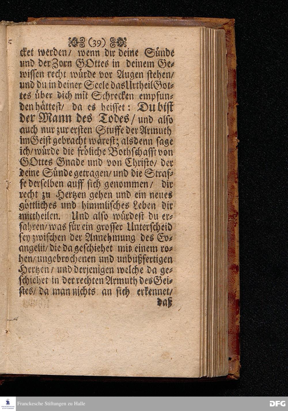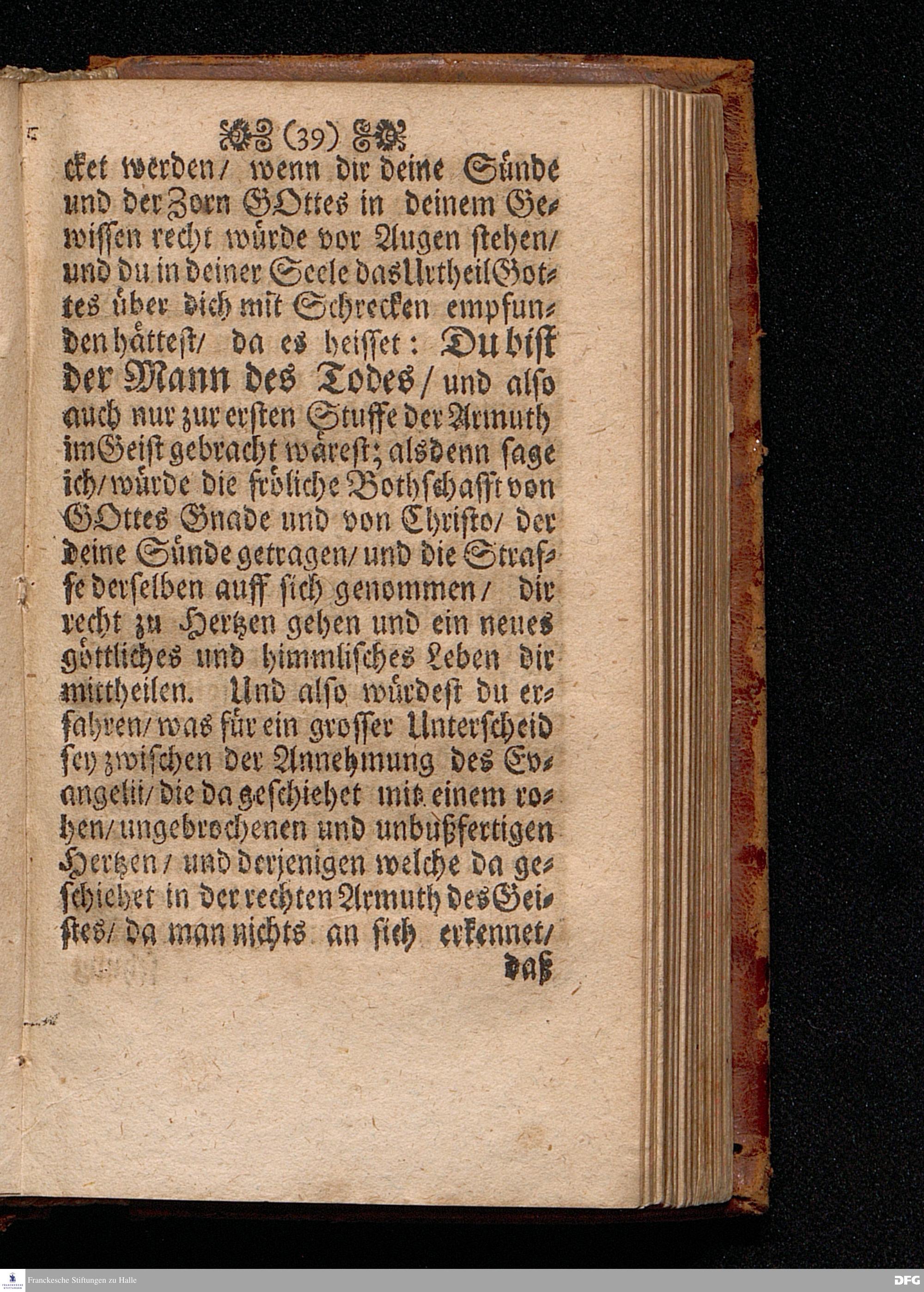 Die Annehmumg Des Evangelii In einer Predigt Uber das Evangelium Luc.I, vers.26=38. Am Festage der Verkündigung Mariä Anno 1699. In der St.Georgen=Kirche zu Glaucha an Halle vorgestellet von M.August Hermann Francken / SS.Theol.Prof.Ord & P.Glauch. HALLE Gedruckt bey Johann Grunerten / Univers.Buchdr. 1702.