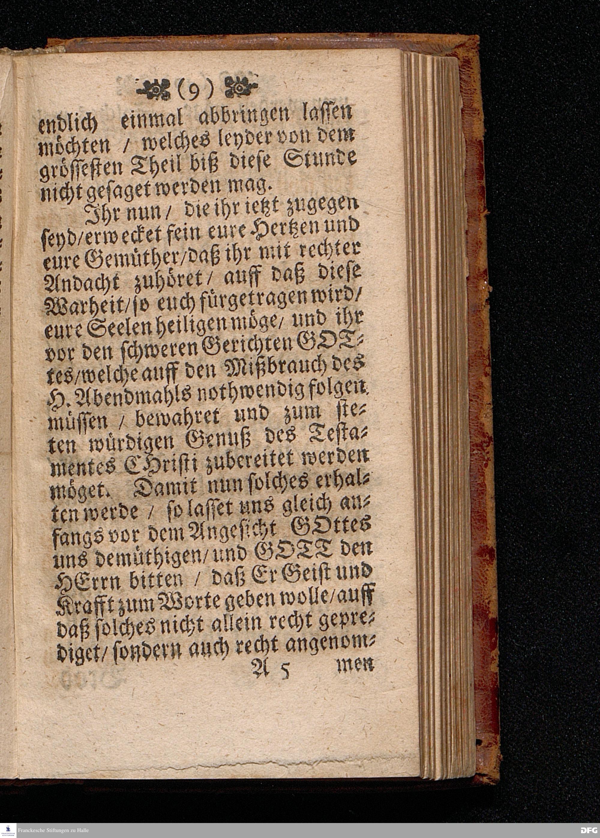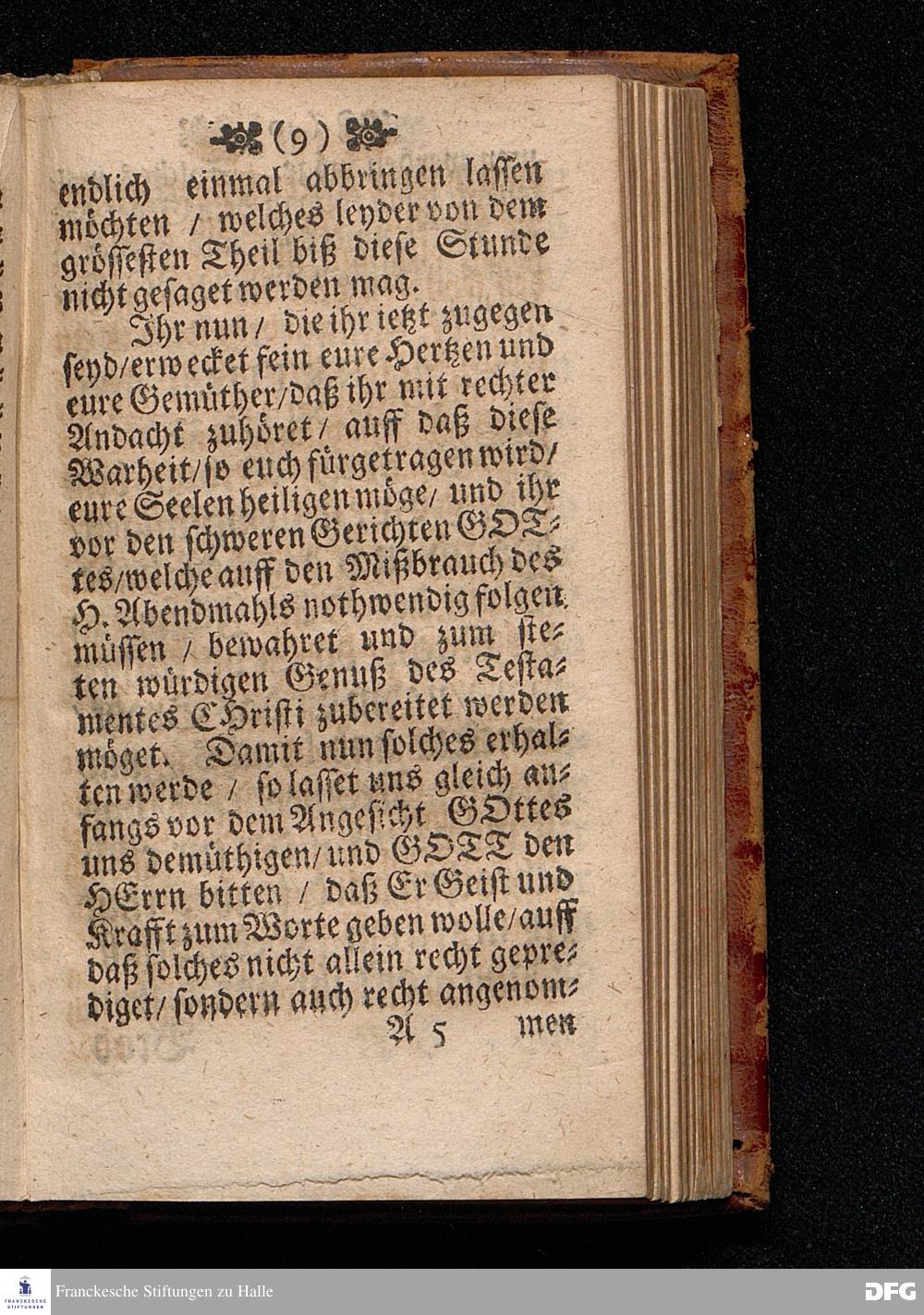 Der Unverantwortliche Mißbrauch des H.Abendmahls In der Evangel.Kirchen / In einer Predigt über I.Cor.XI, 23-33. Am Grünen Donners=Tage ANNO 1699. fürgestellet / und Zu wohlgemeinter Erweckung Der meisten Lehrer u. Zuhörer / die in solchem Mißbrauch so sicher dahin gehen / zum andern mal ans Licht gegeben von M.August Hermann Francken / SS.Theol.Gr.& OO.LL.PP.Ord.& P.Glauch. HALLE / Gedruckt bey Christian Henckeln / Univers.Buchdr. 1699.