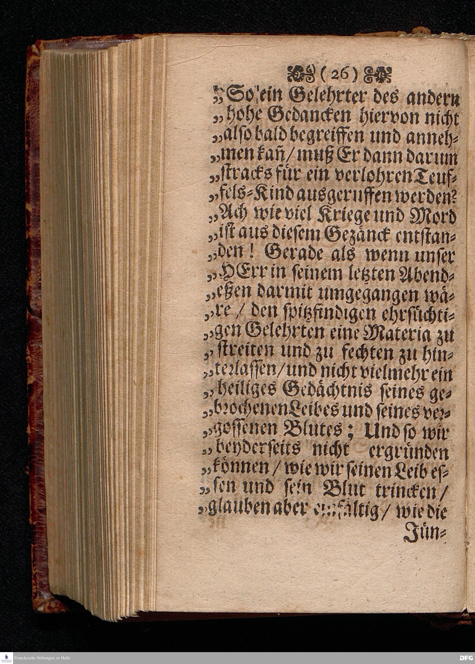 Der Unverantwortliche Mißbrauch des H.Abendmahls In der Evangel.Kirchen / In einer Predigt über I.Cor.XI, 23-33. Am Grünen Donners=Tage ANNO 1699. fürgestellet / und Zu wohlgemeinter Erweckung Der meisten Lehrer u. Zuhörer / die in solchem Mißbrauch so sicher dahin gehen / zum andern mal ans Licht gegeben von M.August Hermann Francken / SS.Theol.Gr.& OO.LL.PP.Ord.& P.Glauch. HALLE / Gedruckt bey Christian Henckeln / Univers.Buchdr. 1699.