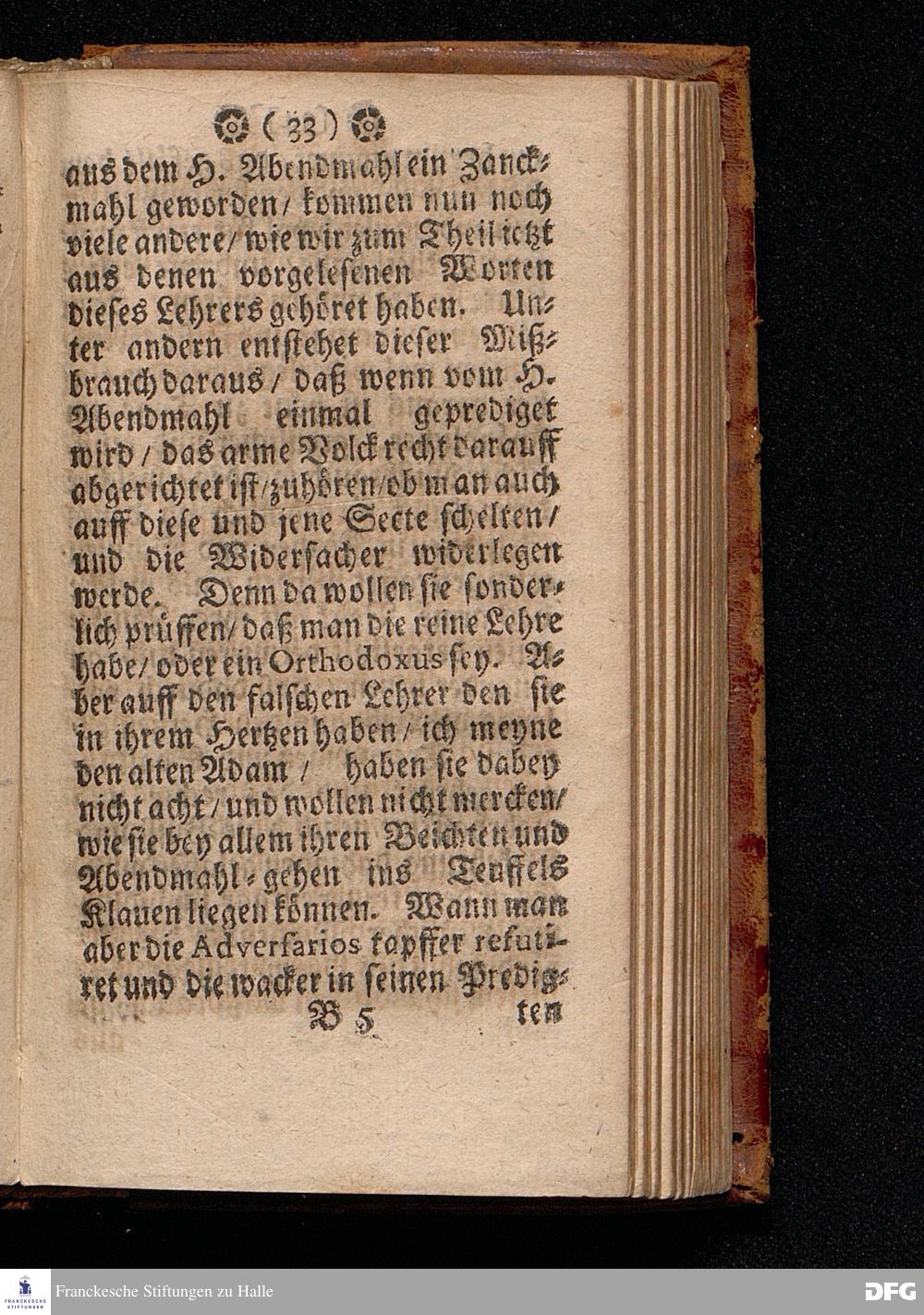 Der Unverantwortliche Mißbrauch des H.Abendmahls In der Evangel.Kirchen / In einer Predigt über I.Cor.XI, 23-33. Am Grünen Donners=Tage ANNO 1699. fürgestellet / und Zu wohlgemeinter Erweckung Der meisten Lehrer u. Zuhörer / die in solchem Mißbrauch so sicher dahin gehen / zum andern mal ans Licht gegeben von M.August Hermann Francken / SS.Theol.Gr.& OO.LL.PP.Ord.& P.Glauch. HALLE / Gedruckt bey Christian Henckeln / Univers.Buchdr. 1699.