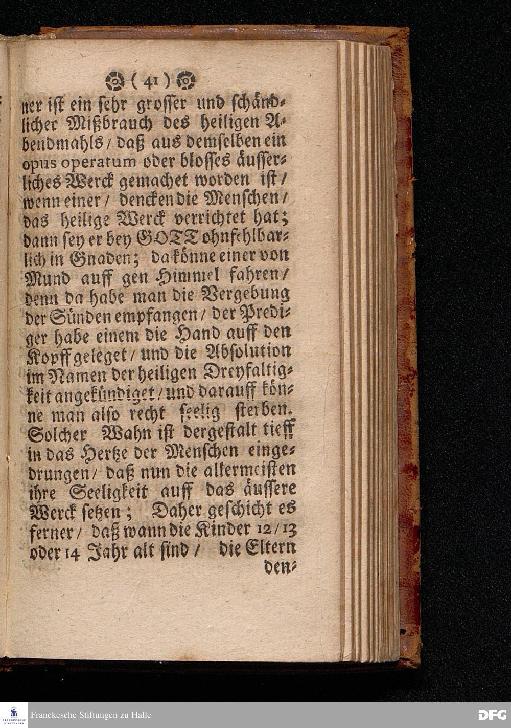 Der Unverantwortliche Mißbrauch des H.Abendmahls In der Evangel.Kirchen / In einer Predigt über I.Cor.XI, 23-33. Am Grünen Donners=Tage ANNO 1699. fürgestellet / und Zu wohlgemeinter Erweckung Der meisten Lehrer u. Zuhörer / die in solchem Mißbrauch so sicher dahin gehen / zum andern mal ans Licht gegeben von M.August Hermann Francken / SS.Theol.Gr.& OO.LL.PP.Ord.& P.Glauch. HALLE / Gedruckt bey Christian Henckeln / Univers.Buchdr. 1699.
