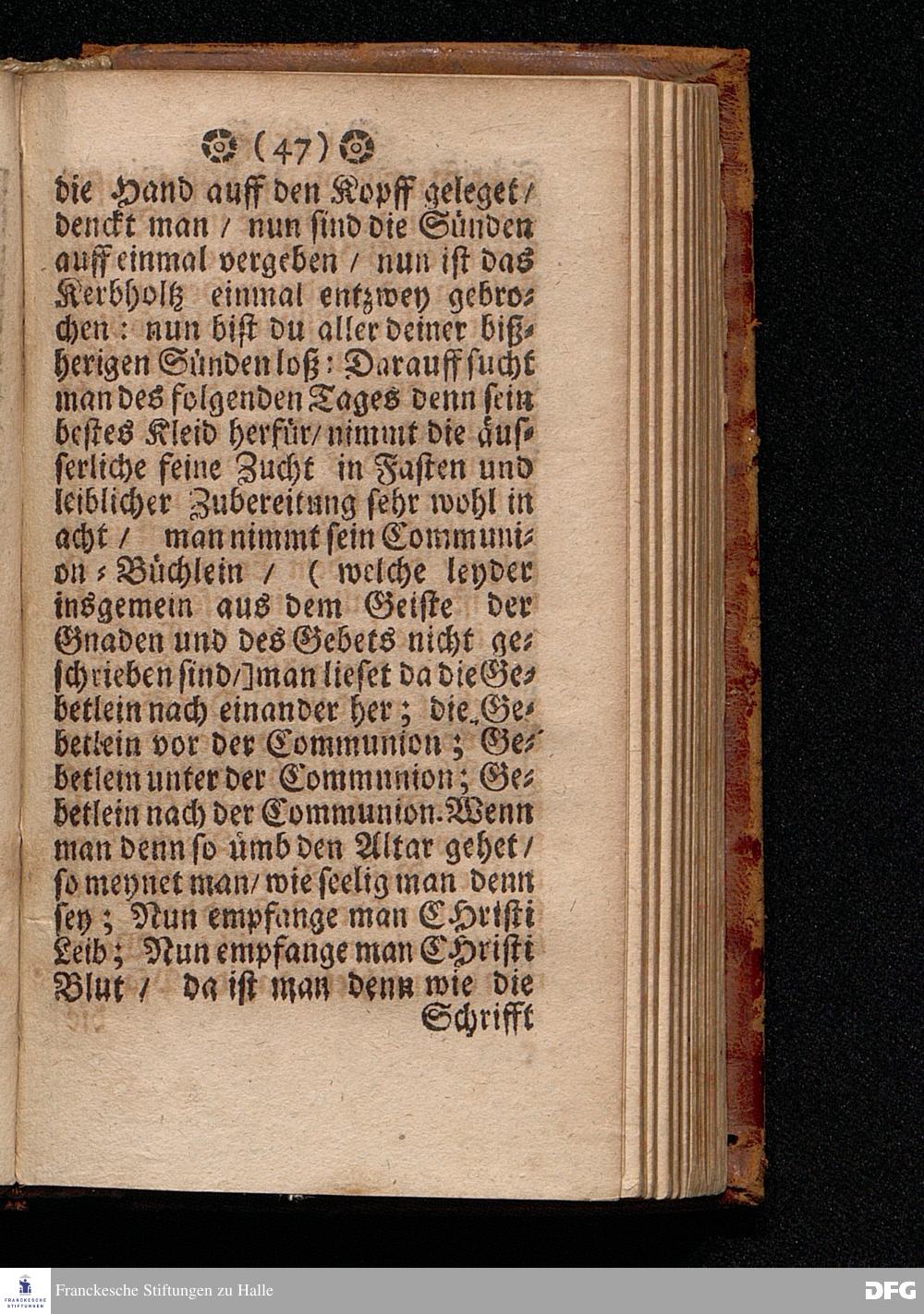 Der Unverantwortliche Mißbrauch des H.Abendmahls In der Evangel.Kirchen / In einer Predigt über I.Cor.XI, 23-33. Am Grünen Donners=Tage ANNO 1699. fürgestellet / und Zu wohlgemeinter Erweckung Der meisten Lehrer u. Zuhörer / die in solchem Mißbrauch so sicher dahin gehen / zum andern mal ans Licht gegeben von M.August Hermann Francken / SS.Theol.Gr.& OO.LL.PP.Ord.& P.Glauch. HALLE / Gedruckt bey Christian Henckeln / Univers.Buchdr. 1699.