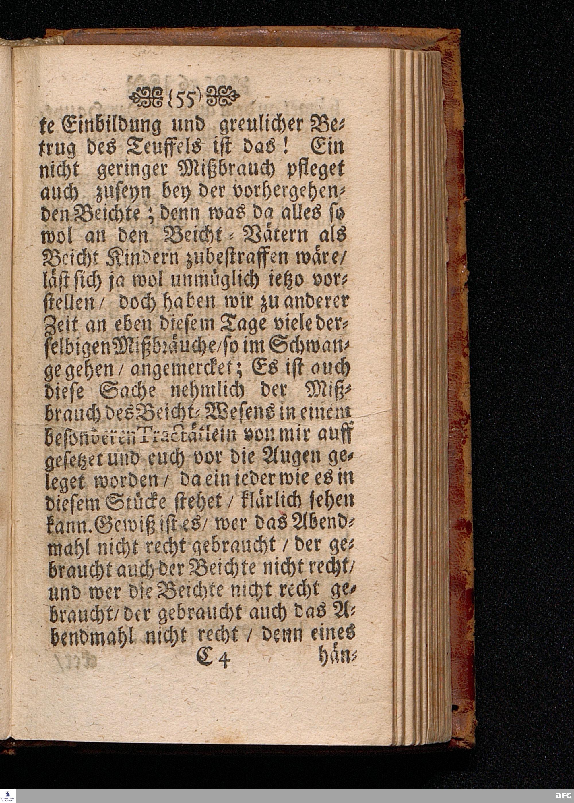 Der Unverantwortliche Mißbrauch des H.Abendmahls In der Evangel.Kirchen / In einer Predigt über I.Cor.XI, 23-33. Am Grünen Donners=Tage ANNO 1699. fürgestellet / und Zu wohlgemeinter Erweckung Der meisten Lehrer u. Zuhörer / die in solchem Mißbrauch so sicher dahin gehen / zum andern mal ans Licht gegeben von M.August Hermann Francken / SS.Theol.Gr.& OO.LL.PP.Ord.& P.Glauch. HALLE / Gedruckt bey Christian Henckeln / Univers.Buchdr. 1699.