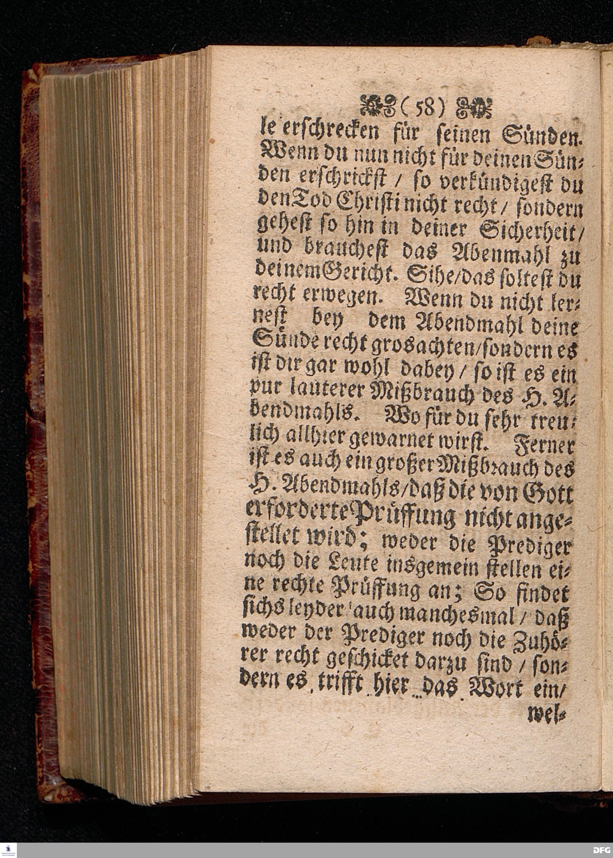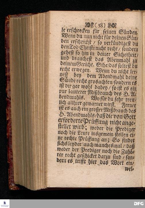 Der Unverantwortliche Mißbrauch des H.Abendmahls In der Evangel.Kirchen / In einer Predigt über I.Cor.XI, 23-33. Am Grünen Donners=Tage ANNO 1699. fürgestellet / und Zu wohlgemeinter Erweckung Der meisten Lehrer u. Zuhörer / die in solchem Mißbrauch so sicher dahin gehen / zum andern mal ans Licht gegeben von M.August Hermann Francken / SS.Theol.Gr.& OO.LL.PP.Ord.& P.Glauch. HALLE / Gedruckt bey Christian Henckeln / Univers.Buchdr. 1699.