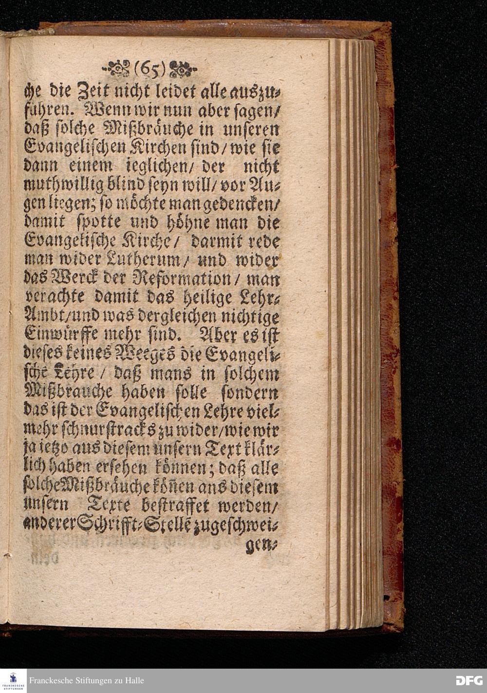 Der Unverantwortliche Mißbrauch des H.Abendmahls In der Evangel.Kirchen / In einer Predigt über I.Cor.XI, 23-33. Am Grünen Donners=Tage ANNO 1699. fürgestellet / und Zu wohlgemeinter Erweckung Der meisten Lehrer u. Zuhörer / die in solchem Mißbrauch so sicher dahin gehen / zum andern mal ans Licht gegeben von M.August Hermann Francken / SS.Theol.Gr.& OO.LL.PP.Ord.& P.Glauch. HALLE / Gedruckt bey Christian Henckeln / Univers.Buchdr. 1699.