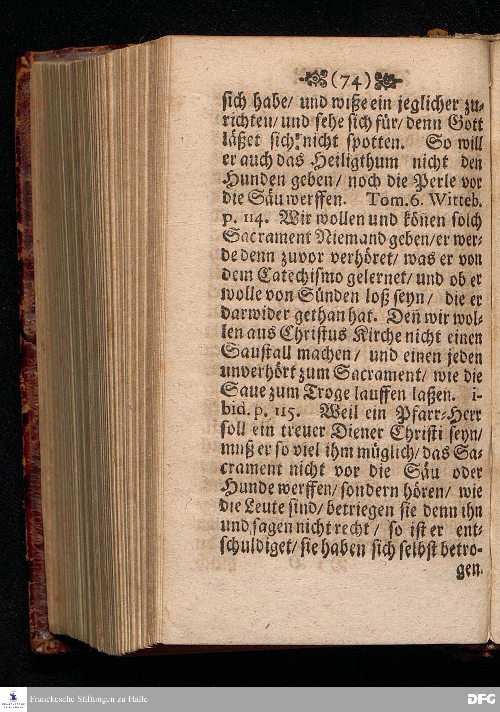 Der Unverantwortliche Mißbrauch des H.Abendmahls In der Evangel.Kirchen / In einer Predigt über I.Cor.XI, 23-33. Am Grünen Donners=Tage ANNO 1699. fürgestellet / und Zu wohlgemeinter Erweckung Der meisten Lehrer u. Zuhörer / die in solchem Mißbrauch so sicher dahin gehen / zum andern mal ans Licht gegeben von M.August Hermann Francken / SS.Theol.Gr.& OO.LL.PP.Ord.& P.Glauch. HALLE / Gedruckt bey Christian Henckeln / Univers.Buchdr. 1699.